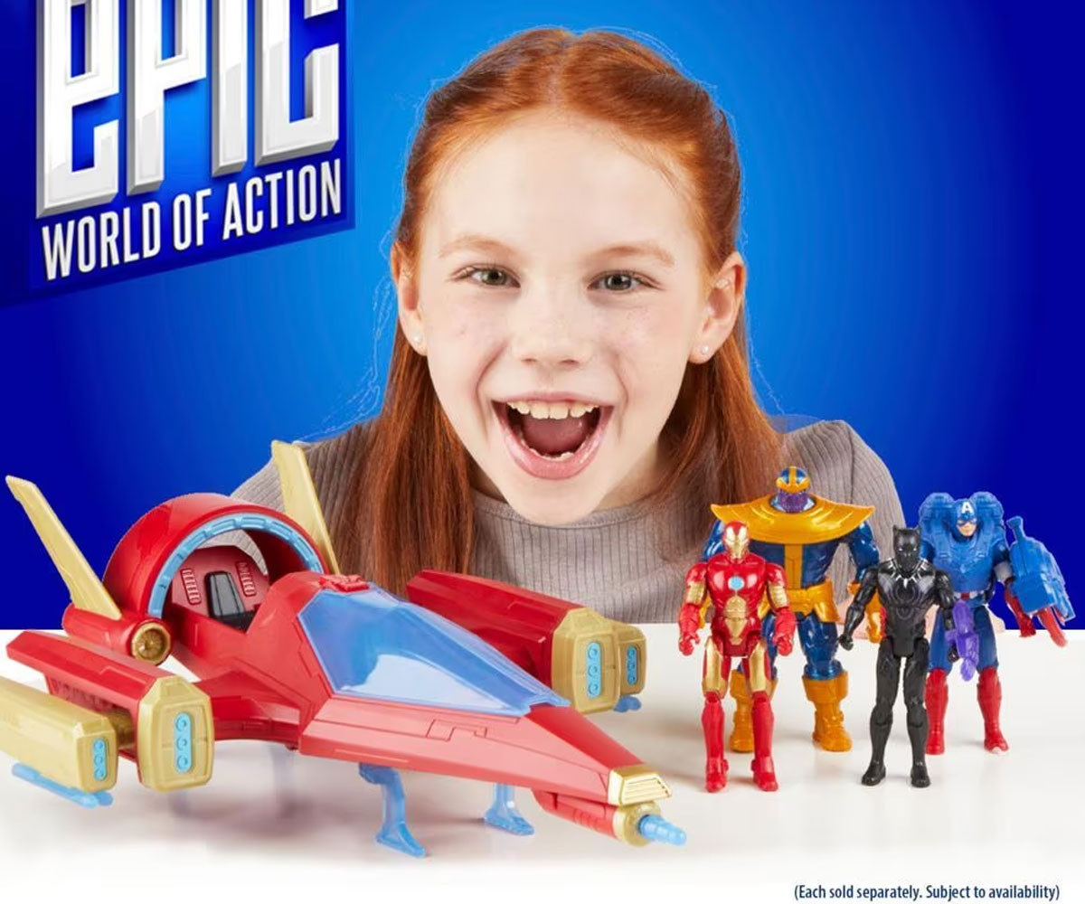 Представете си епични битки в небето с комплекта на Avengers Epic Hero Series Iron Man Repulsor Blast Battle Jet и фигура на действие! Издигнете времето за игра на нови висоти с тази играчка Iron Man от Marvel Avengers. Когато Iron Man се нуждае от подкрепа, натиснете бутона на върха на джета, за да активирате бойния режим с изскачащи репулсори! Забелязали сте лош човек долу? Спуснете се и превърнете колесника в уред за хващане с натискането на бутон! Фигурата на Iron Man има множество точки на артикулация за възможност за позициониране по време на игра, а с размери от 4 инча (10 см), тази играчка превозно средство за деца е перфектното допълнение към колекцията на малкия ви фен. Фигури на действие от серията Avengers Epic Hero Series за момчета и момичета са страхотни подаръци. Потърсете още Marvel фигури на действие и превозни средства за събиране в света на играта Epic Hero Series на Hasbro. (Всяка се продава отделно. Предлага се в наличност.)