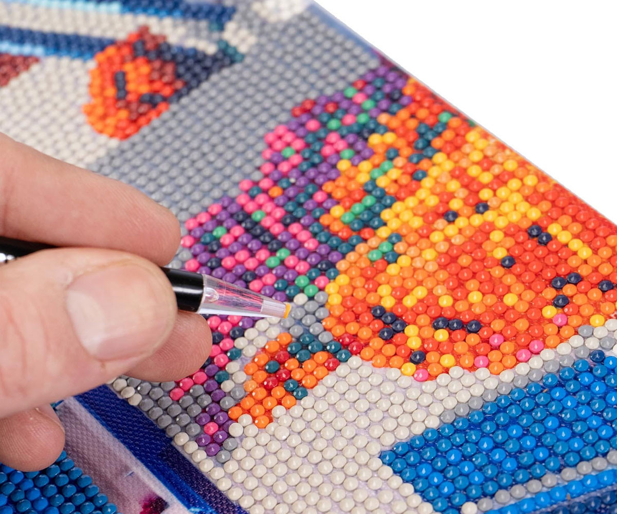 - За да декорирате мозайката, отстранете защитното фолио от картината и поставяйте диамантите върху съответните номера. Инструкциите ще ви водят стъпка по стъпка.