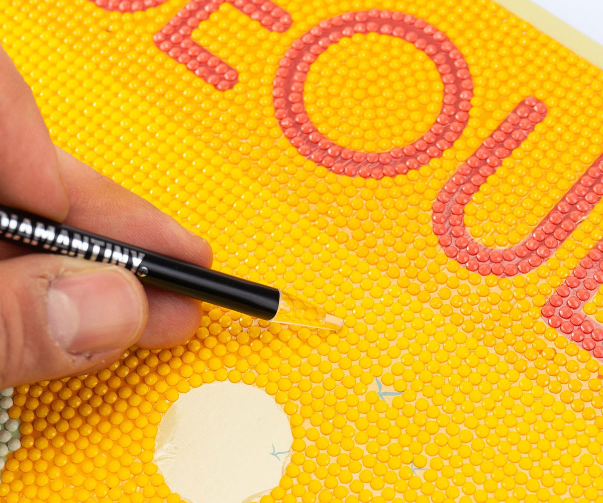 - Отстранете защитното фолио от картината и поставяйте камъчетата върху съответните номера, следвайки цветната схема. Инструкциите ще ви насочват през целия процес.