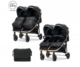 Бебешка количка за близнаци с чанта и покривало Lorelli Duo, Black