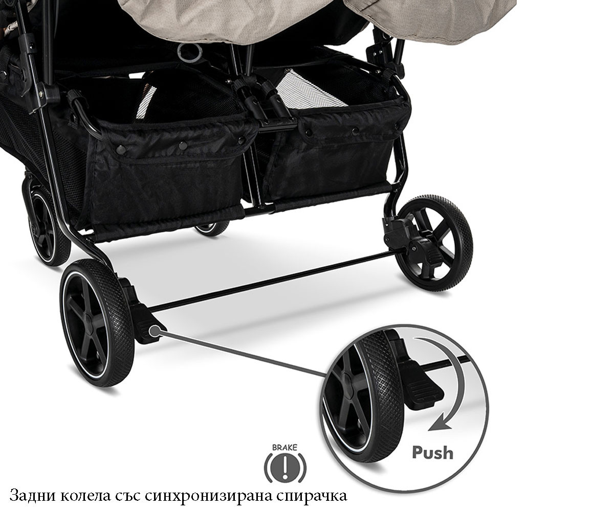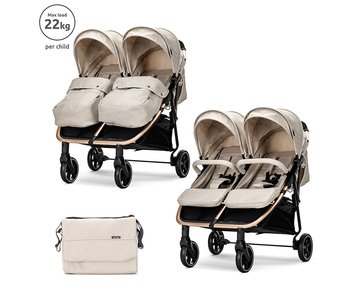 Lorelli - Комбинирана количка с чанта за близнаци Duo до 22 кг, beige