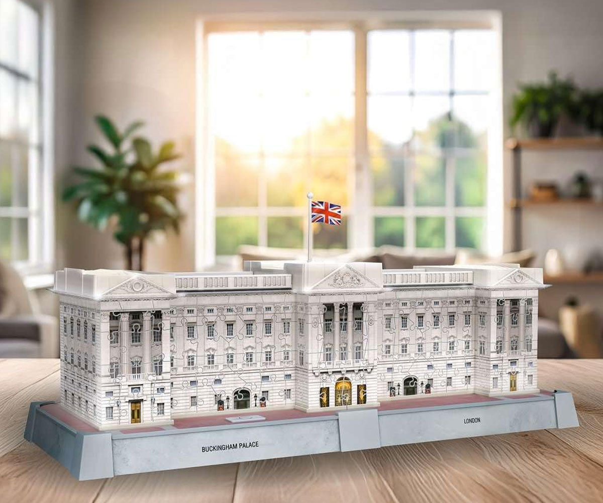 Живейте като крал Чарлз - сглобете свой собствен дворец у дома и го оставете да заблести! Първоначално построена през 1703 г. като Бъкингамската къща и превърната в дворец през 1820-те години, сградата е една от най-популярните туристически забележителности в Лондон. С този модел на Бъкингамския дворец британското кралско семейство „се нанася“ у вас и благодарение на осветлението създава истински кралска атмосфера вечер и през нощта! С помощта на най-новата 3D пъзел технология можете да създадете този впечатляващ 3D модел на Бъкингамския дворец. Този 3D пъзел “Night Edition” използва LED технология, за да създаде 3 различни светлинни ефекта - може да свети с постоянна бяла светлина, да пулсира или да сменя цветовете. Автоматичната смяна на цветовете го прави ефектно и впечатляващо допълнение към всяка стая или идеална нощна лампа. Не е необходимо лепило! Прекрасен сувенир или подарък.