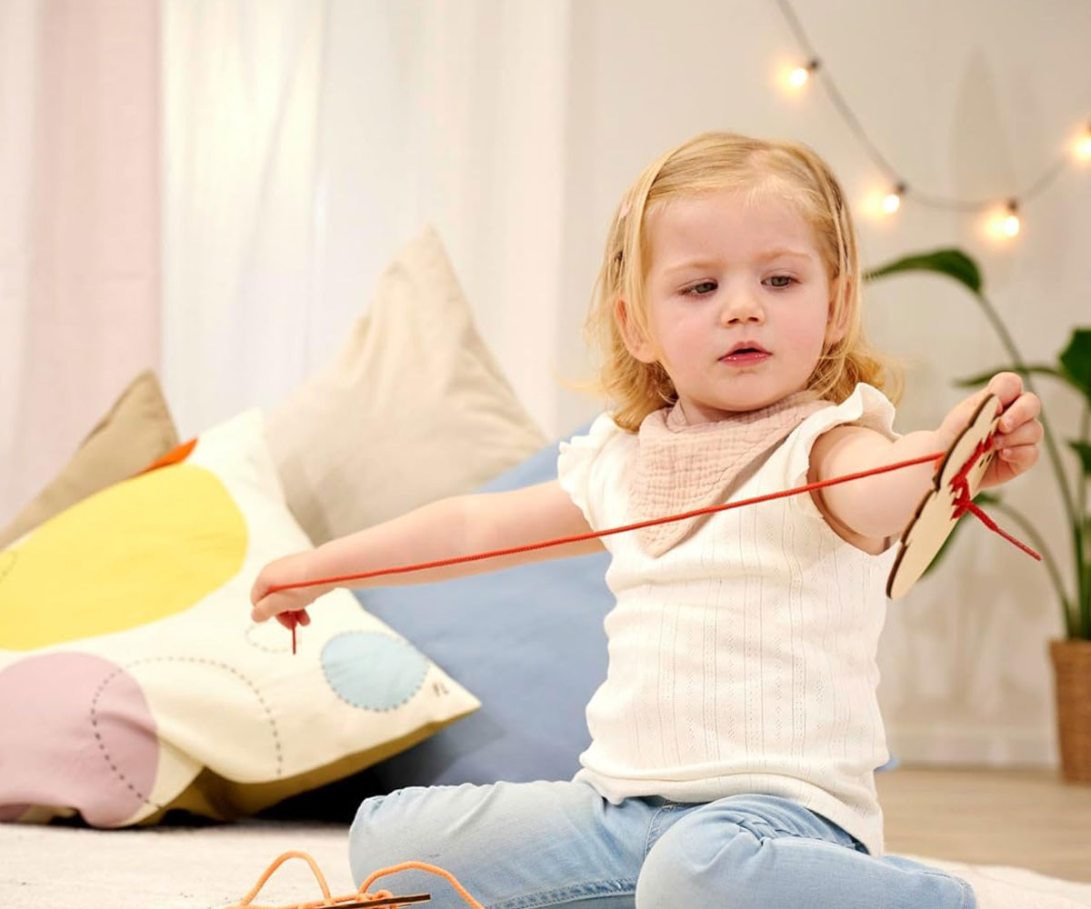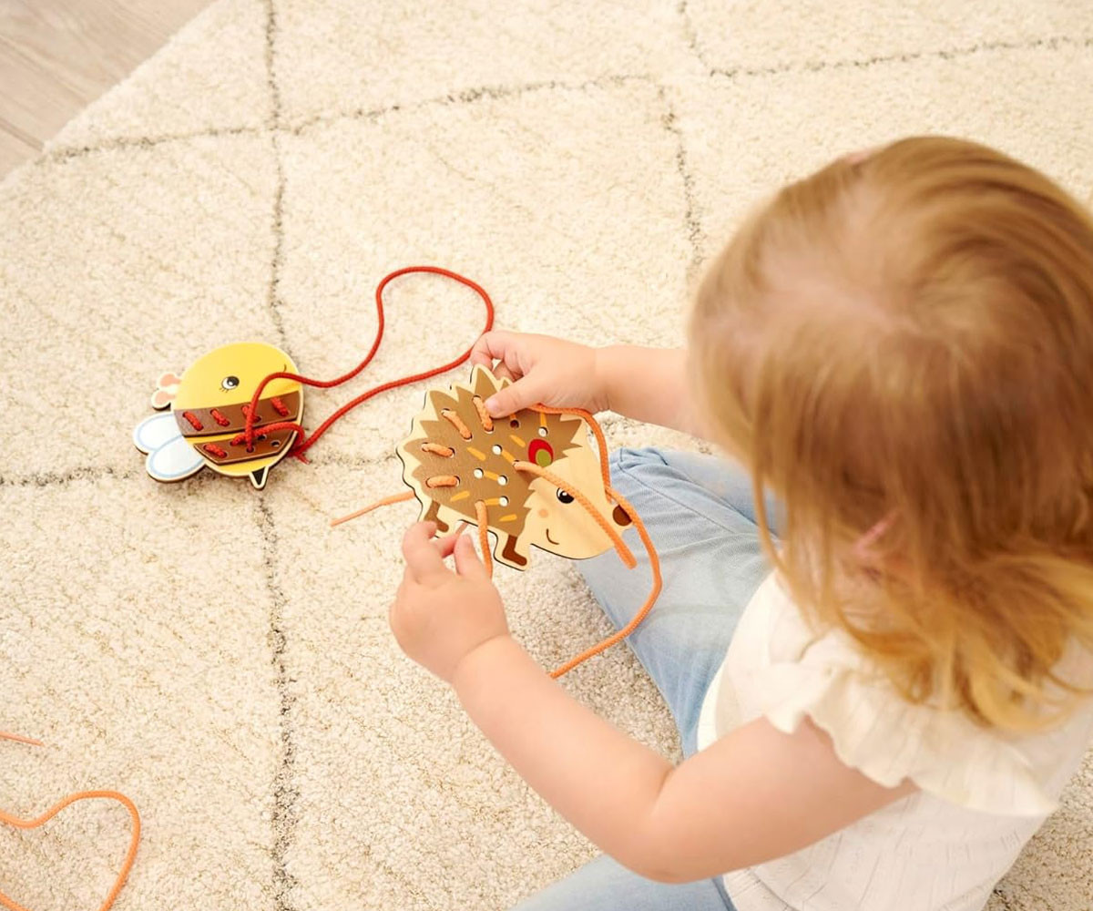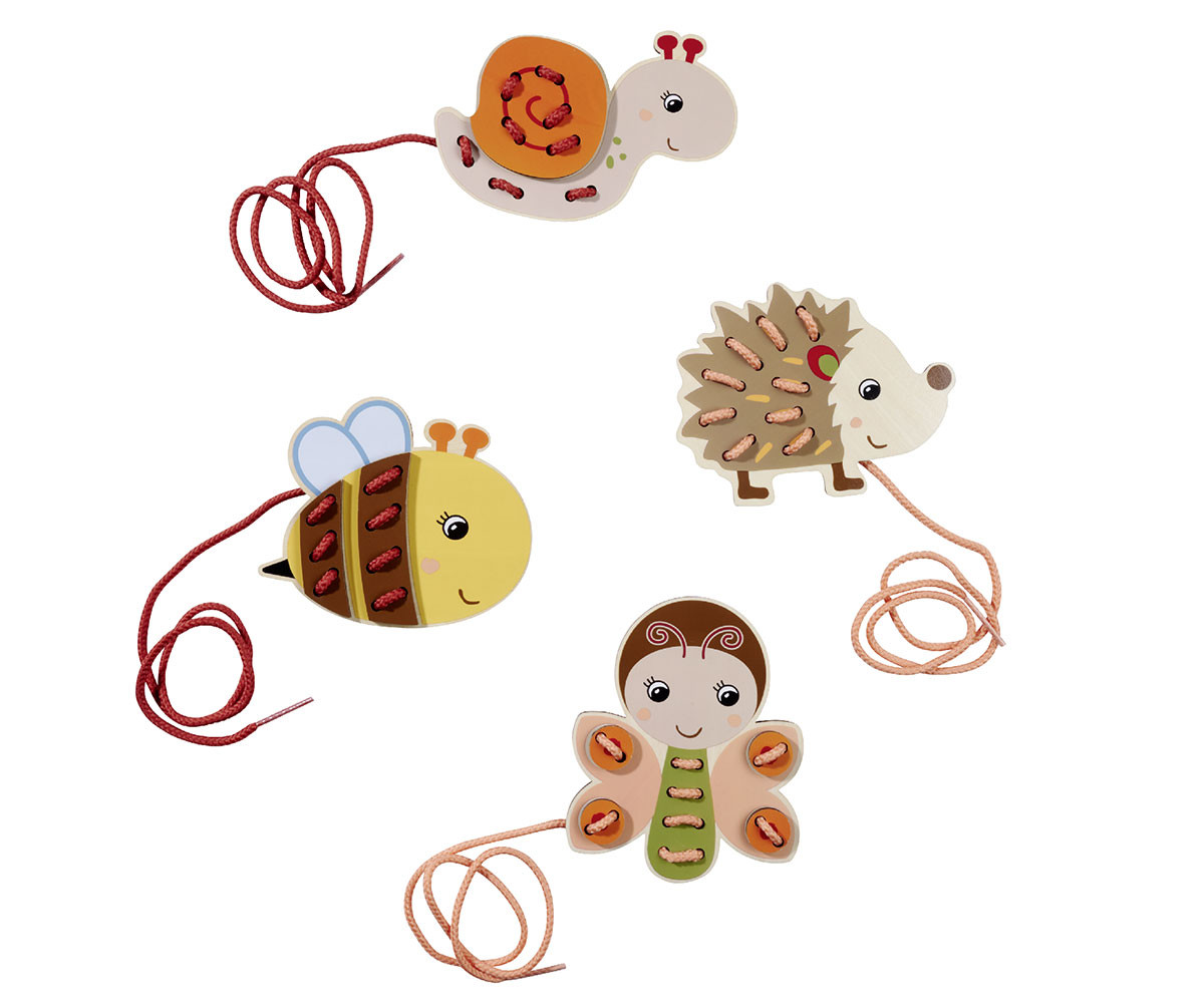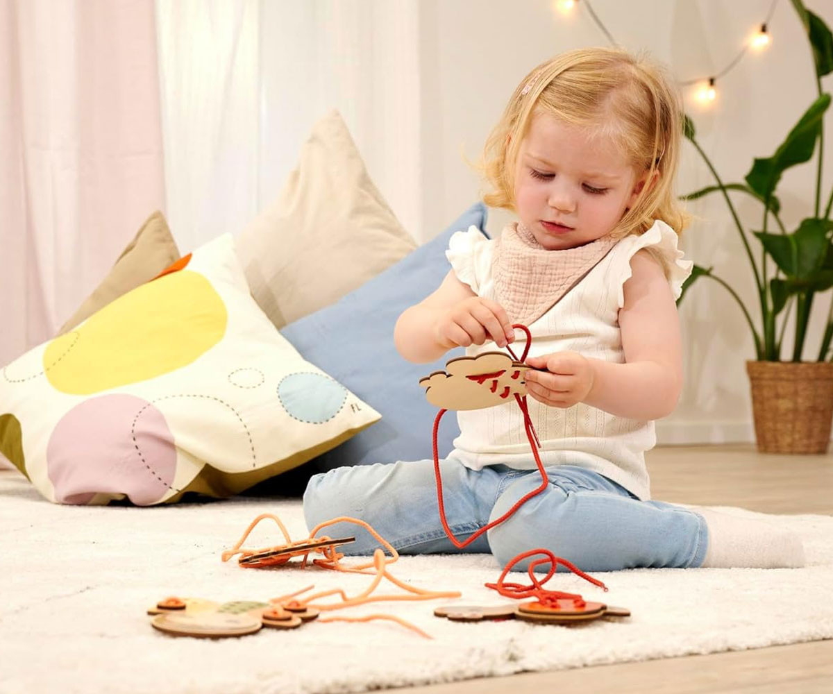 - Цветните и съобразени с децата фигури за нанизване събуждат ентусиазъм и мотивират за учене чрез игра;