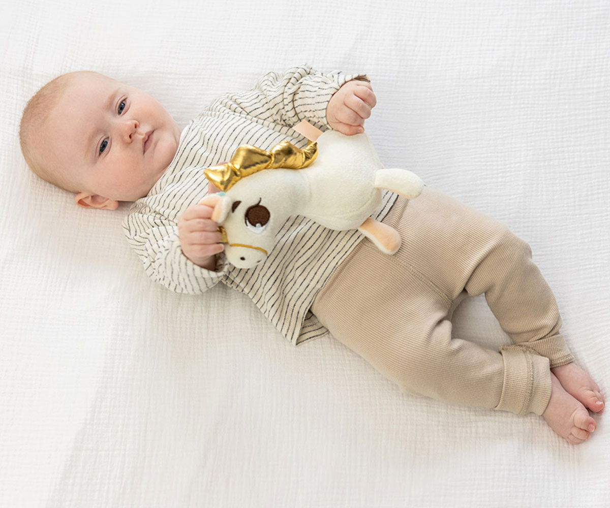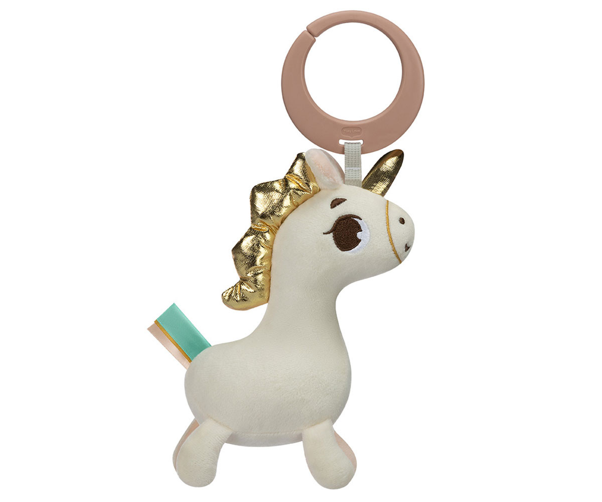 TINY LOVE Колекция Unicorn Wonderlands добавя нотка на магия и причудлива фантазия към детската стая на вашето мъниче, превръщайки я във възхитителна страна на чудесата. Продуктите са украсени с очарователни розови цветове, пастелни нюанси и приказни мотиви с Еднорог, Звезда и Дъга. Колекция Unicorn Wonderlands блести във всеки детайл! TINY LOVE Музикална играчка Еднорог Take along Unicorn Wonderlands насърчава когнитивното и двигателното развитието на вашето бебе като му предлага тактилна, аудио и визуална стимулация. Играчката е снабдена с клипс за закачане за удобно пренасяне и игра в движение по време на разходка или на път.