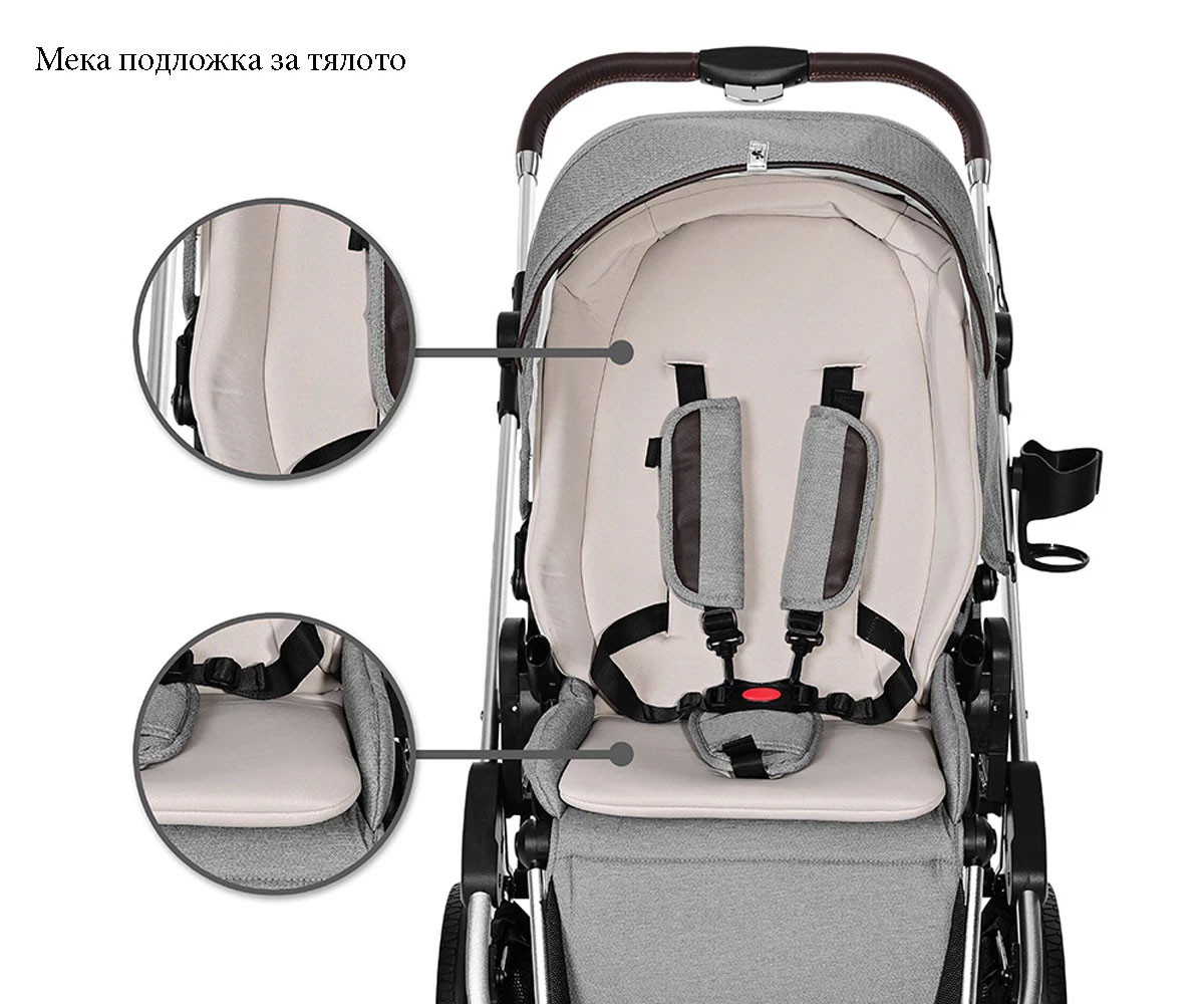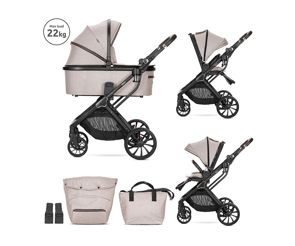 Lorelli - Комбинирана бебешка количка до 22кг с адаптори Glory 2в1, Beige