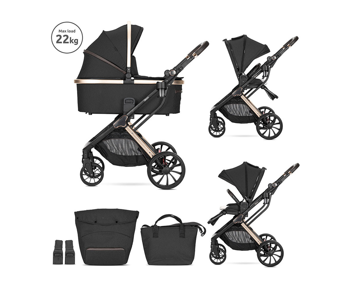 Lorelli - Комбинирана бебешка количка до 22кг с адаптори Glory 2в1, Black