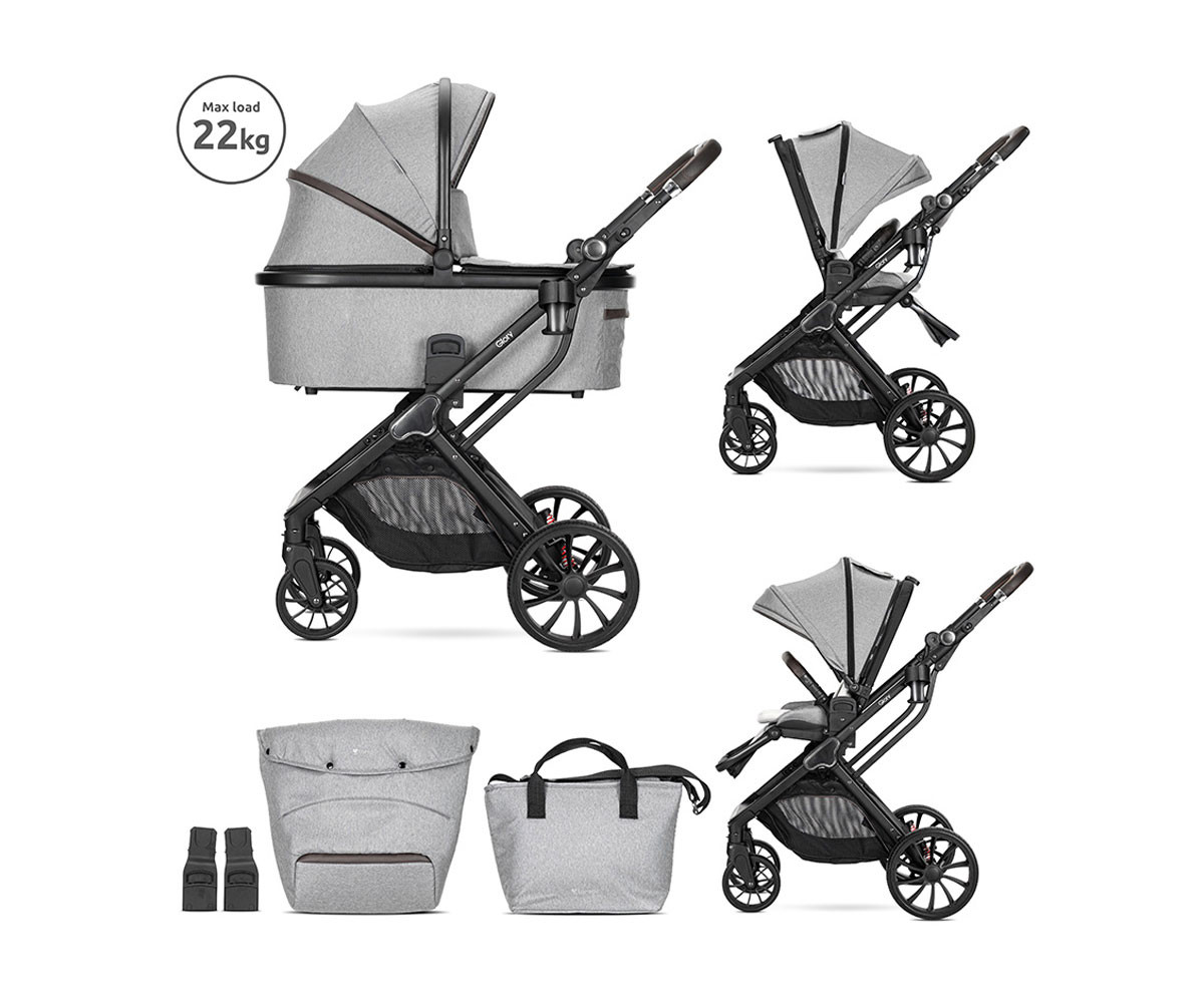Lorelli - Комбинирана бебешка количка до 22кг с адаптори Glory 2в1, Grey
