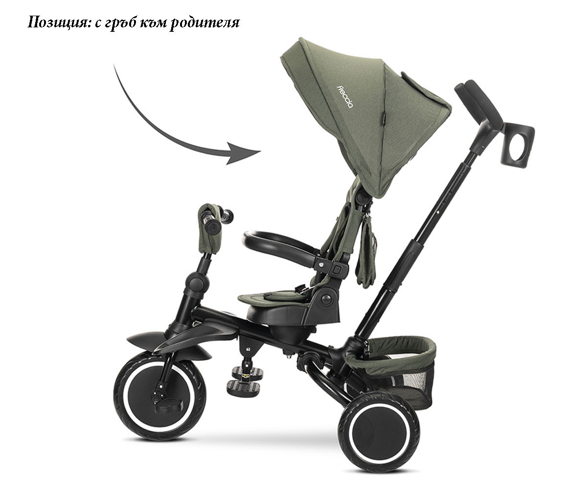 - Удобна родителска дръжка с 3 позиции за регулиране на височината;