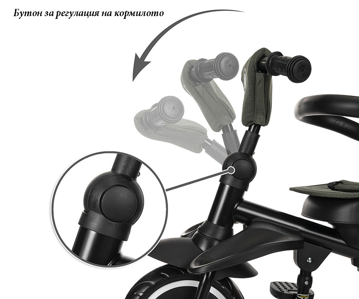 - Удобна родителска дръжка с 3 позиции за регулиране на височината;