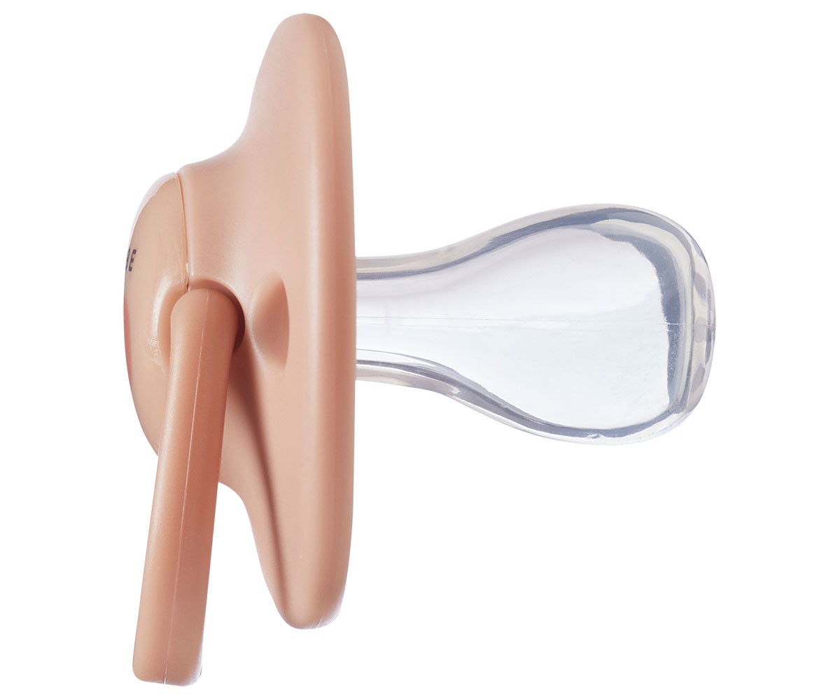 - Симетрична ортодонтична форма, която позволява биберона да се обръща, така че да сте спокойни, че винаги е поставен в правилната посока;