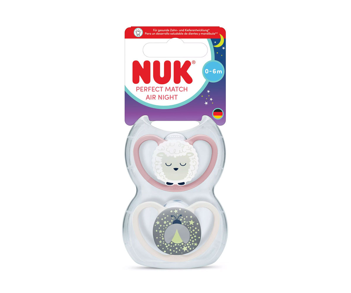 - Име: Nuk - Силиконов биберон залъгалка Perfect Match Air Night, 2 броя, с кутийка, 0-6м, Овца
