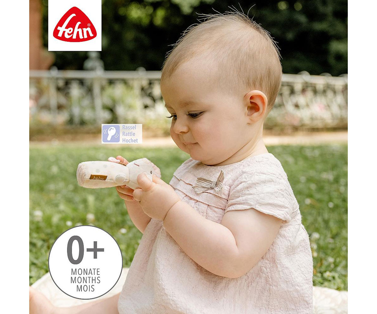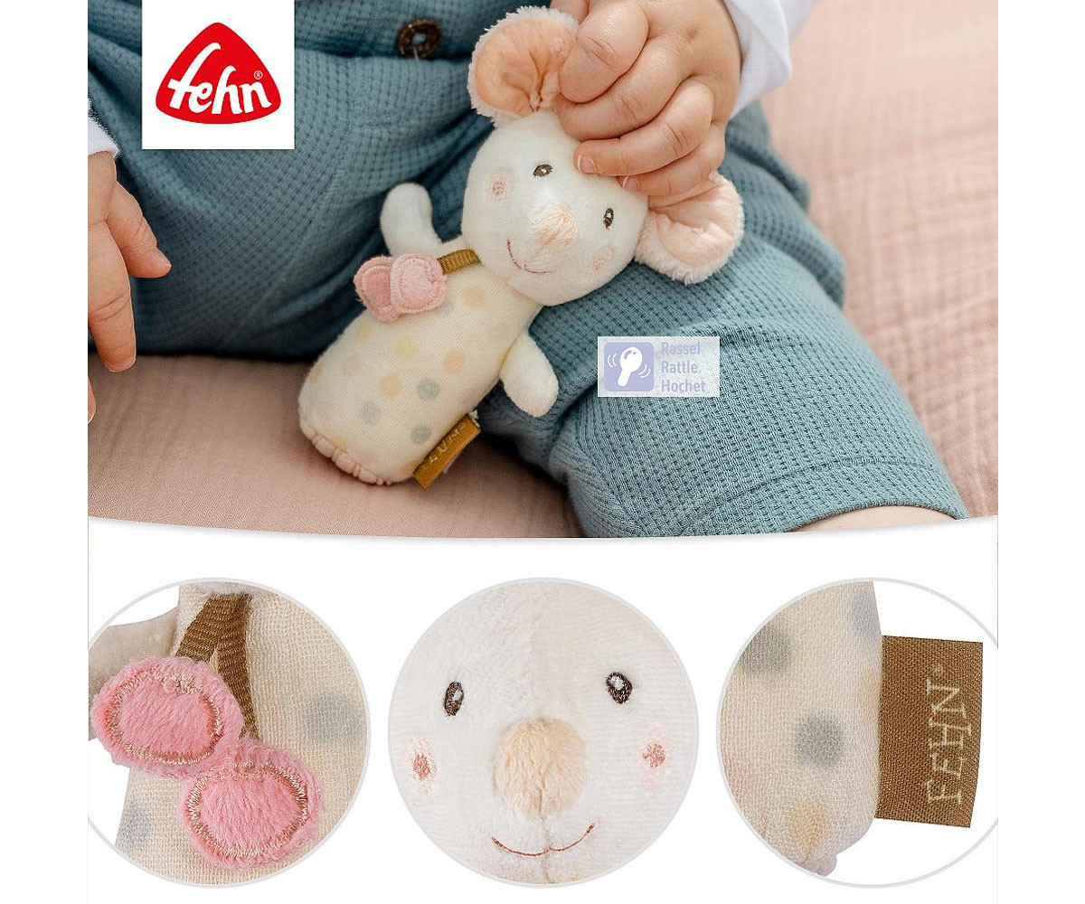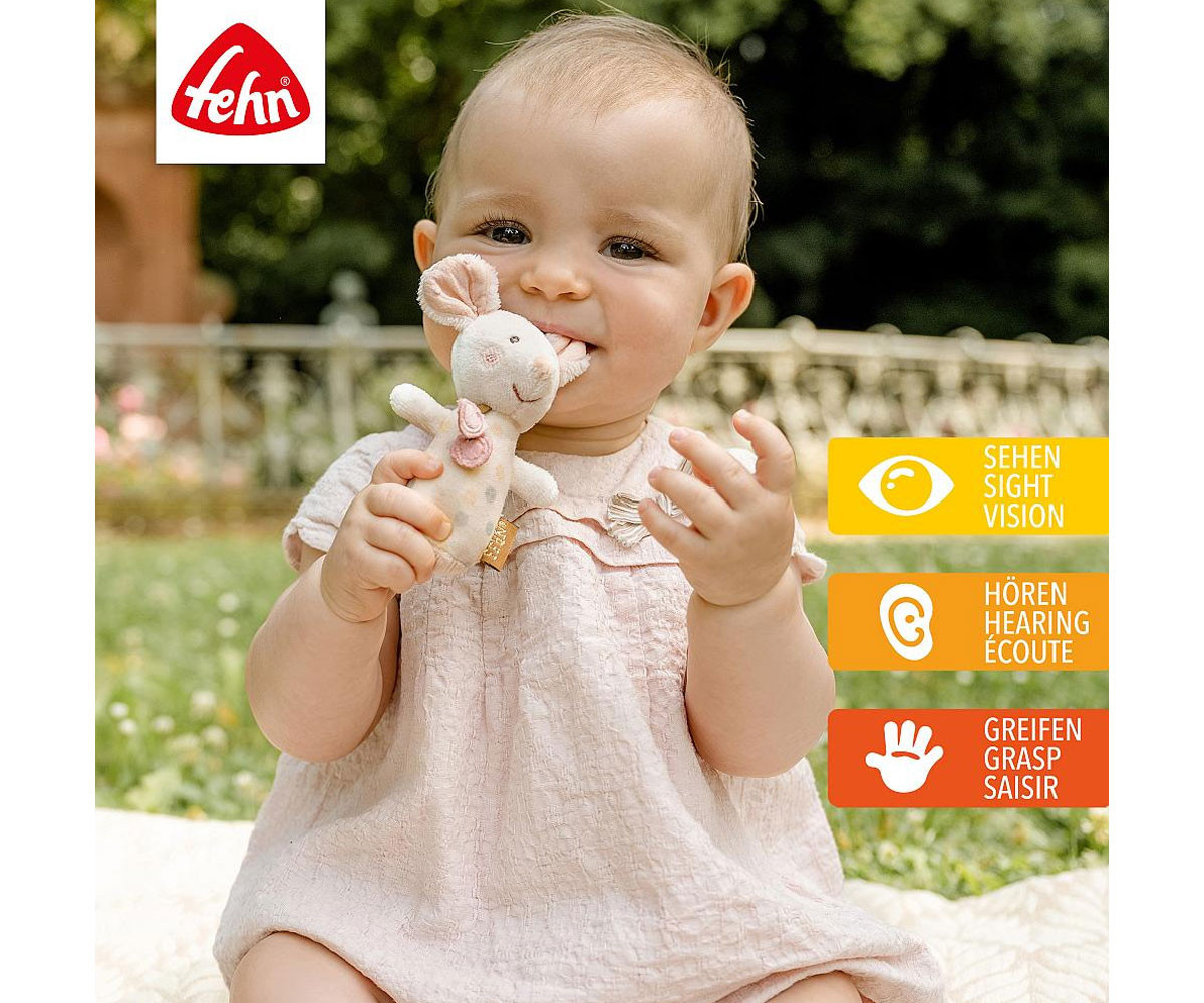 Мини-мишката от колекцията feehnLAND може да се хваща, пипа и звъни, като по този начин стимулира интереса на бебето и го кани да открива и изследва. Малкото игрово животинче играе важна роля в развитието на слуха, хващането, тактилното усещане и фината моторика на най-малките, което го прави идеален подарък за раждане, кръщене или рожден ден. Малките откриватели бързо ще обикнат сладкото плюшено животинче и ще го вземат със себе си навсякъде – вкъщи, на път, в кошчето за бебе или в количката!