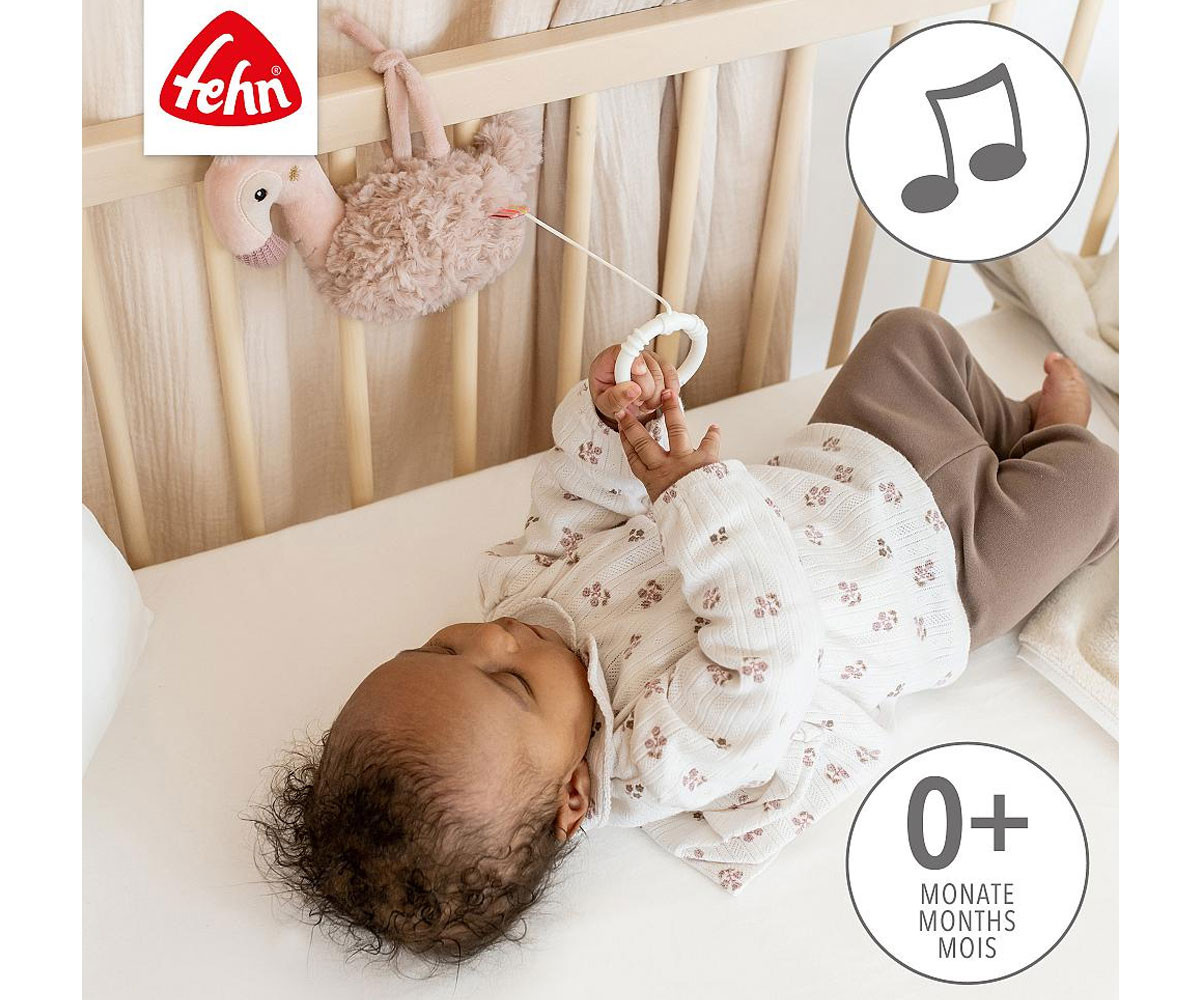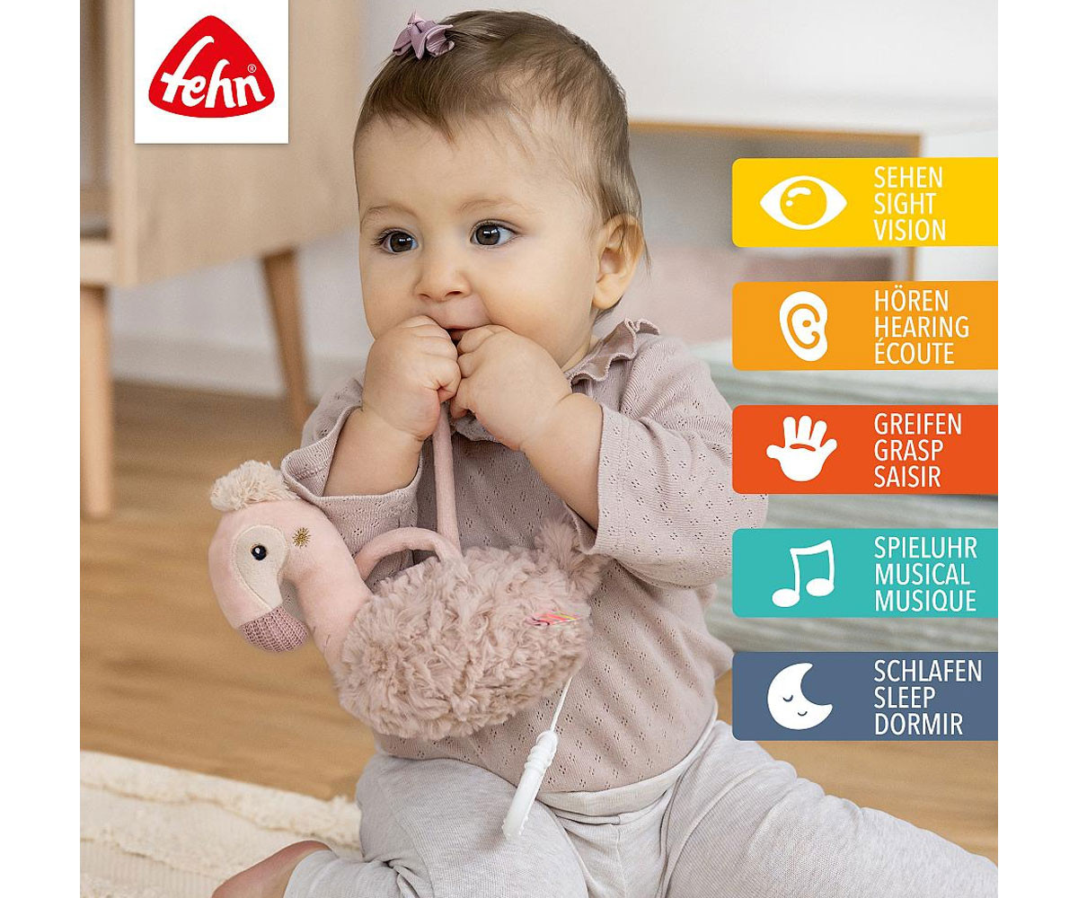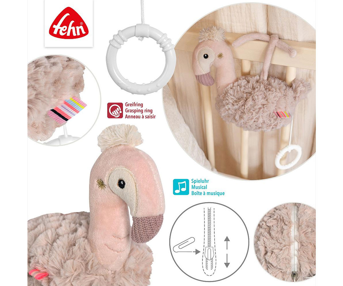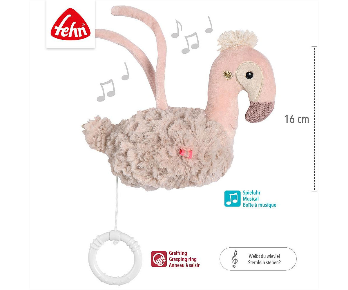 babyFEHN - Мека музикална играчка Фламинго Lazy, Crazy & Pink, 18 см