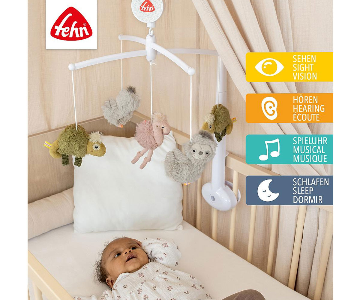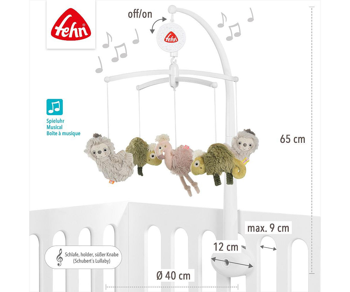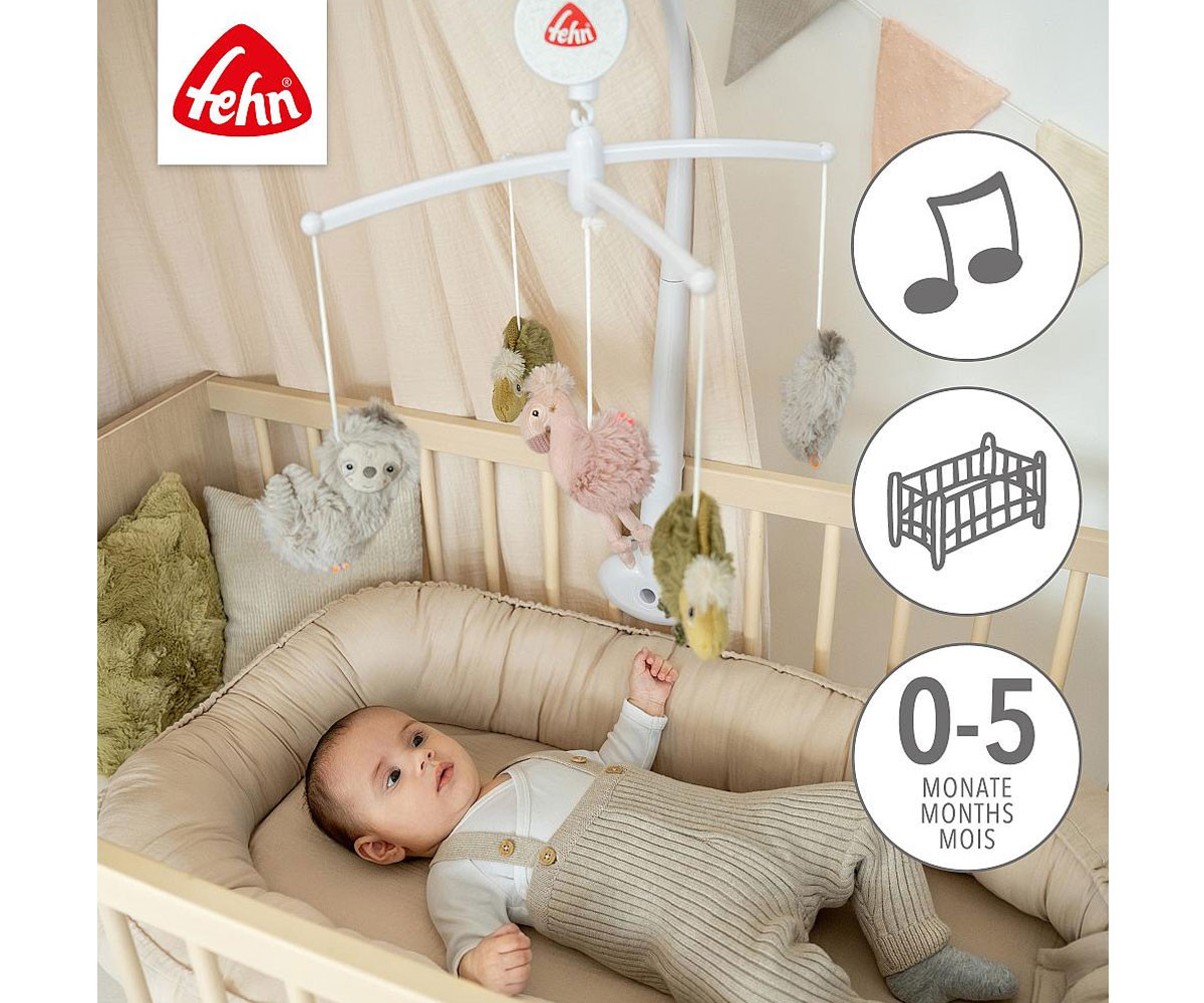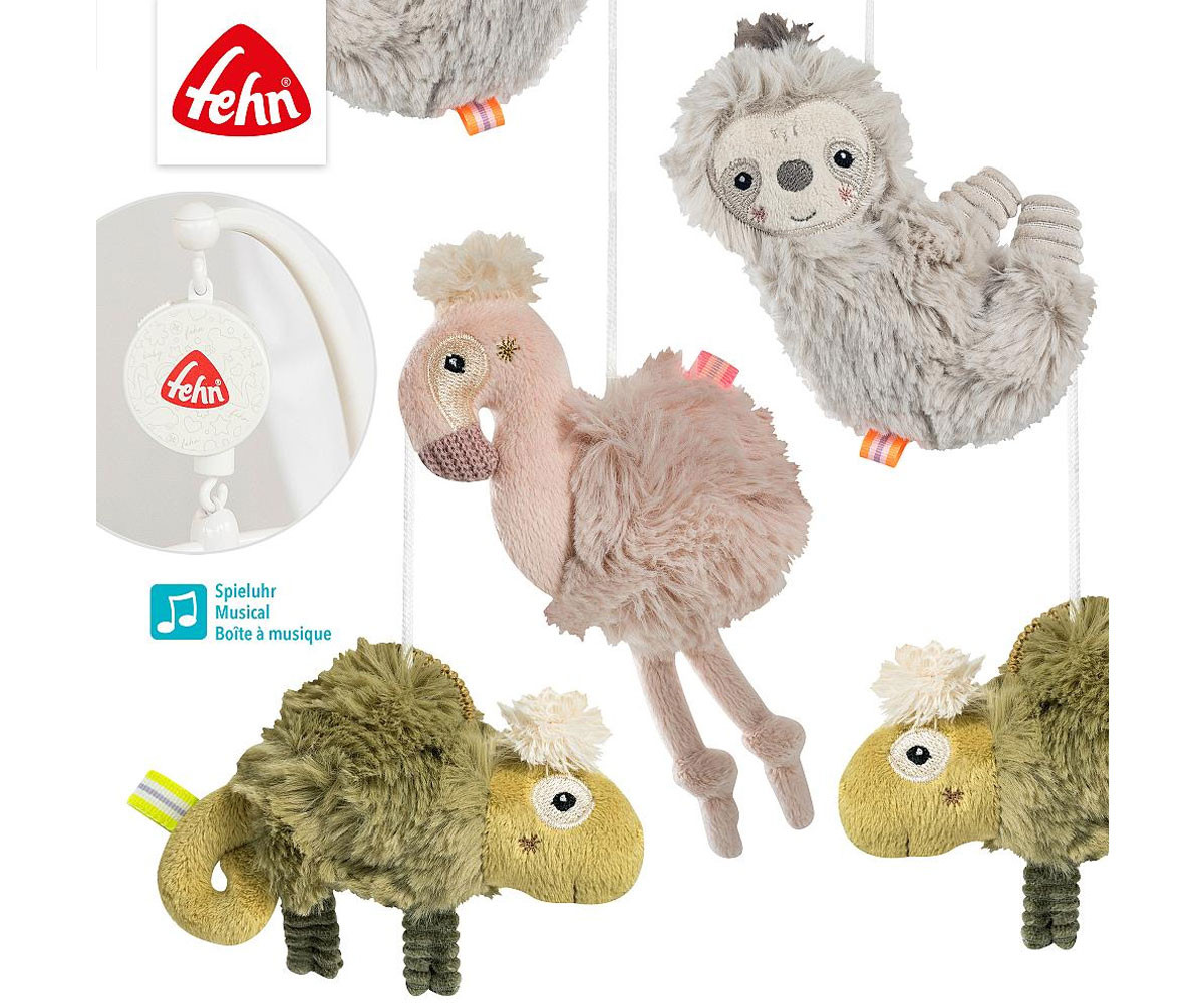 babyFEHN - Музикална въртележка за легло Lazy,Crazy & Pink, 40 см