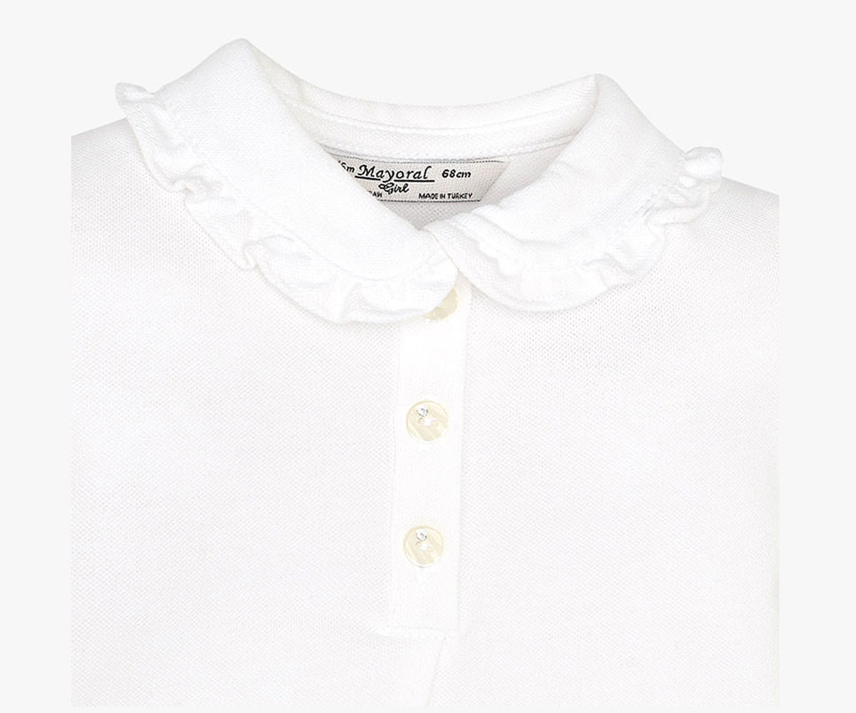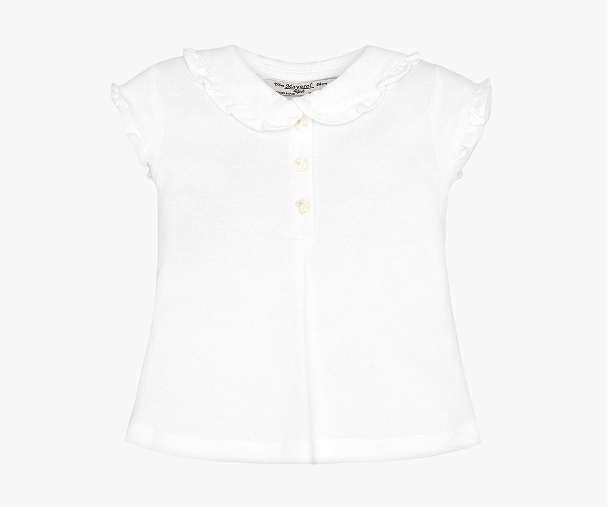 Детска дрешка Mayoral - Блузка с якичка къс ръкав момиче, цвят 29, 6-24 м., ръст 68-92 см. Състав: 95% Памук, 5% Еластан.