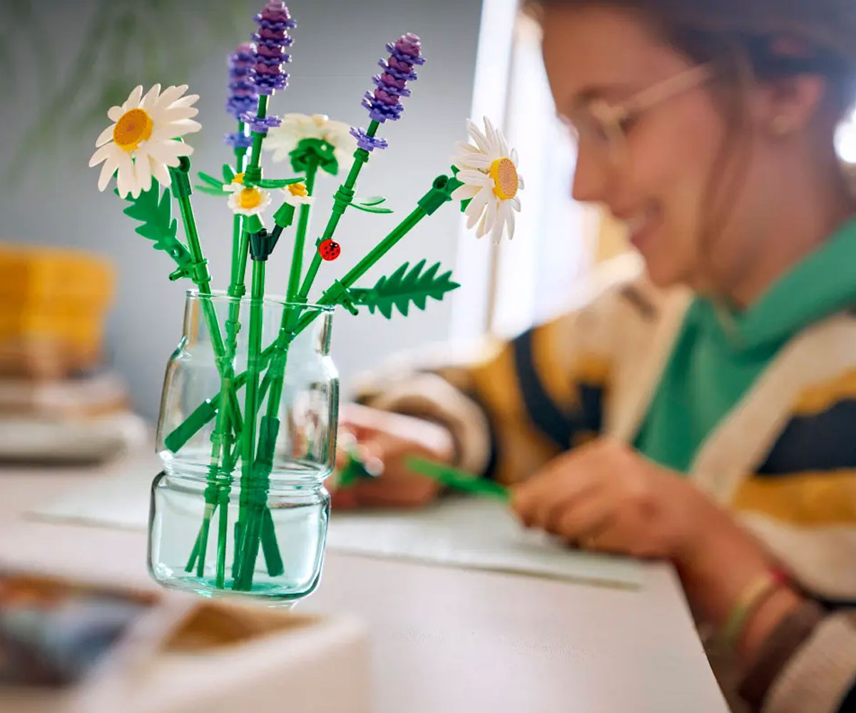 Нека младото въображение разцъфти със строителния комплект LEGO® Botanicals Маргаритки (11508) за деца над 9 години. Момичетата и момчетата ще се забавляват много, създавайки сладкия букет, който включва 3 големи маргаритки, 2 стъбла на малки маргаритки, 3 успокояващи лавандули и ярки зелени стъбла. Предлагайки перфектен баланс на веселие и спокойствие, малкият букет LEGO включва много реалистични цветя и очарователна калинка-късметче на едно от лавандуловите стъбла, сладко допълнение, което със сигурност ще зарадва младите строители. След като приключат, децата могат да покажат букета си с цветя LEGO гордо като естетически приятен декор на спалня или бюро, който няма да увехне или да се нуждае от поливане. Интелигентен подарък за момичета, момчета и тийнейджъри за рождени дни и други специални поводи, както и забавен подарък за любители на природата, този букет цветя LEGO може да бъде ценен завинаги от фенове на цветята от всички възрасти. Готови ли сте да усетите как креативността ви разцъфва? Създайте сладък букет със строителния комплект LEGO® Botanicals Маргаритки, който включва 3 големи маргаритки, 2 стебла на малки маргаритки, 3 успокояващи лавандули и ярки зелени стъбла. Погледнете внимателно и ще забележите и очарователна калинка-късметче на едно от стъблата. След като приключите с построяването на букета, го покажете гордо като декорация на спалня или бюро.