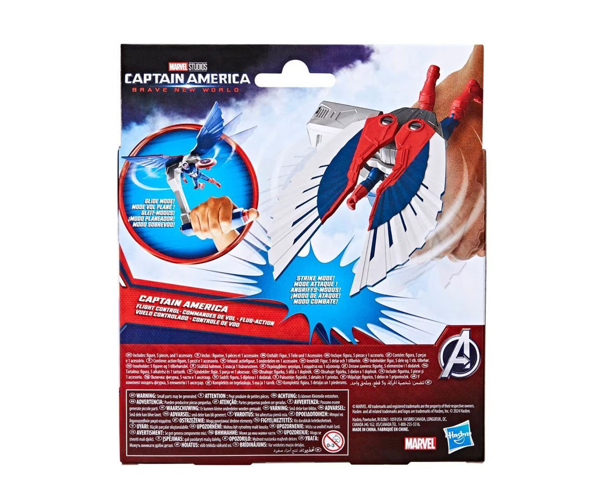 Представете си действие в небето заедно с Marvel супергероите с играчката Captain America Flight Control, вдъхновена от филма Captain America: Brave New World, част от Marvel Cinematic Universe. Тази колекционерска фигура е част от серията Epic Hero Series на Hasbro и предлага дизайн и декорация, вдъхновени от филма, както и артикулирани крайници и включен аксесоар - щит. Престорете се, че летите в Glide Mode или преминете в Strike Mode и атакувайте лошите с натискането на бутон, за да активирате крилете! Сам Уилсън намира нови съюзници и лети като Капитан Америка, за да предотврати глобален конфликт. Тази фигура с височина 10 см ще бъде перфектният подарък за деца или допълнение към всяка колекция от фигури на супергерои!
