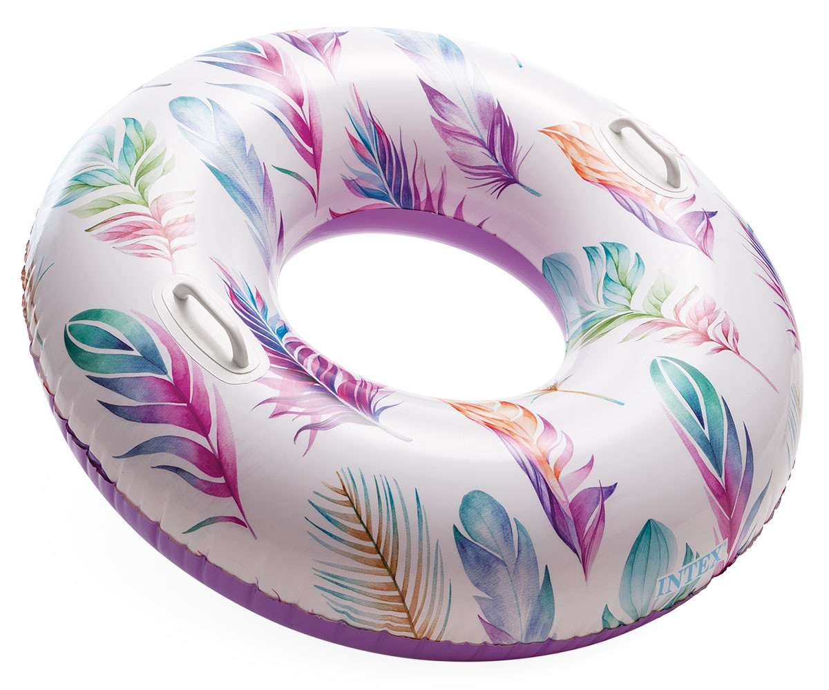 Детски голям надуваем пояс с дръжки INTEX Transparent, розово/лилави листа