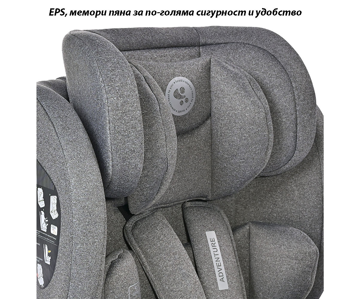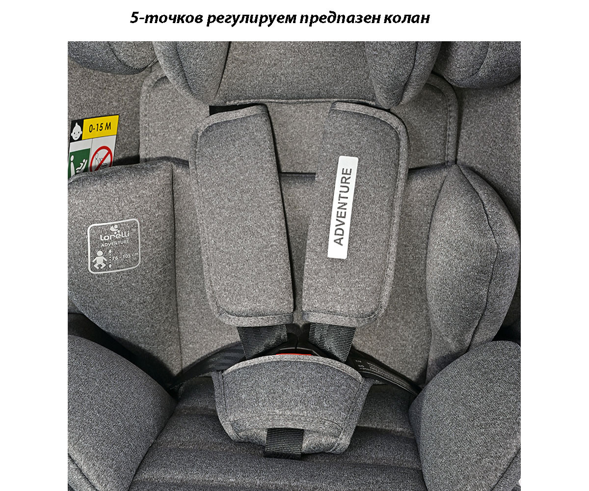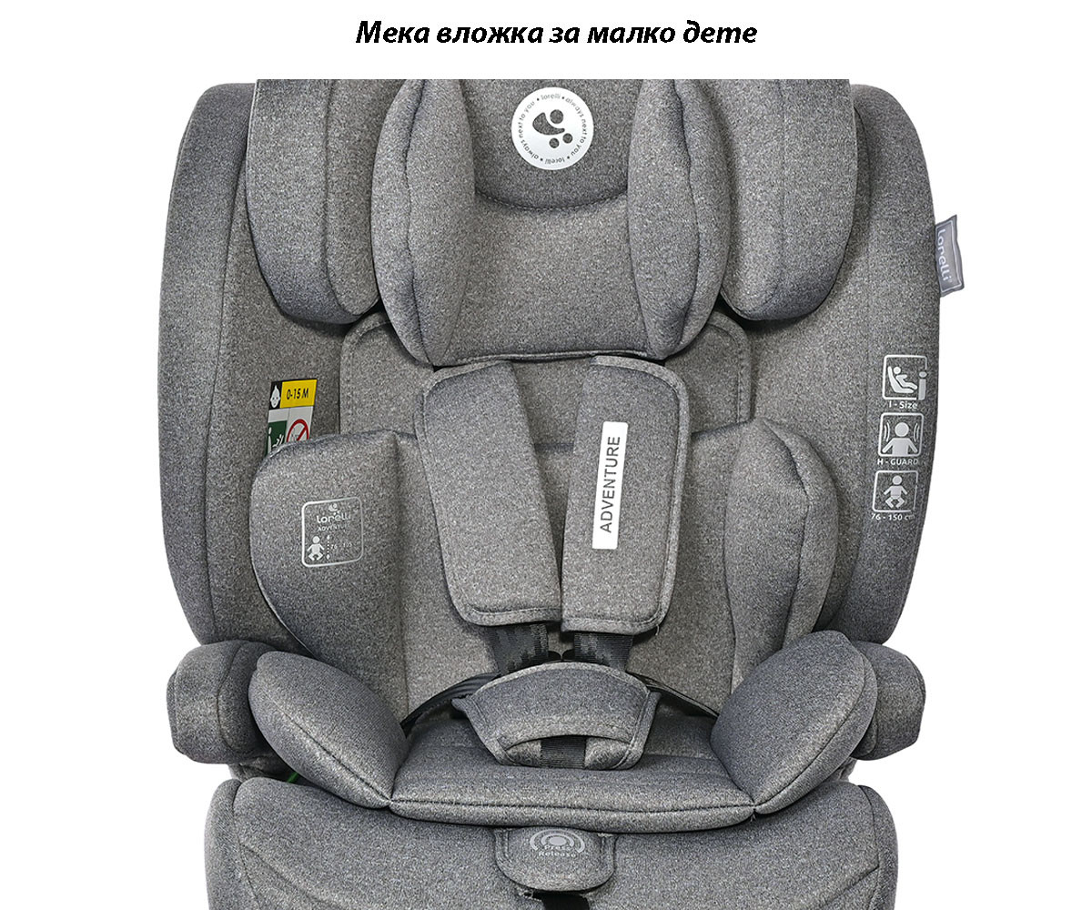 Детско столче за кола Lorelli Adventure, I-size, 76-150 см, Black Jasper, 9-36 кг