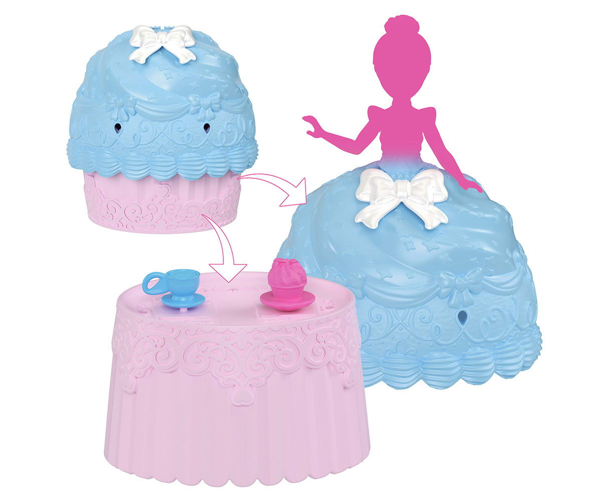 Разопаковането придобива ново измерение с чаено парти в тази играчка Disney Princess мини кукли в кексче за разкриване! Ароматните кексчета крият изненади вътре – малка кукла на Дисни принцеса и два аксесоара за чаено парти. След разкриването, децата могат да използват горната част на кексчето като красива пола за куклата, а долната част – като масичка за партито. Куклите не могат да стоят самостоятелно. Цветовете и декорациите може да варират.