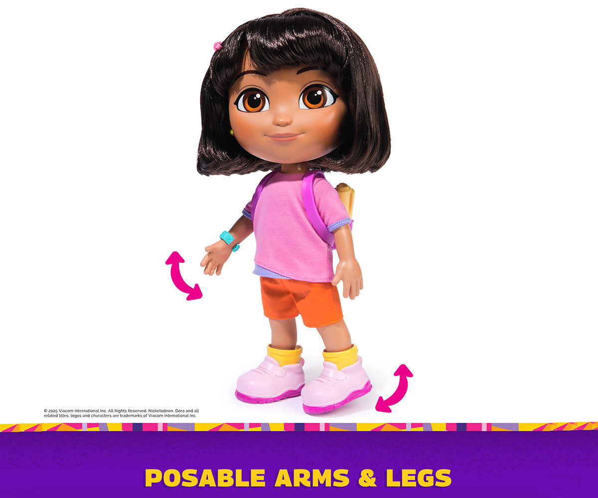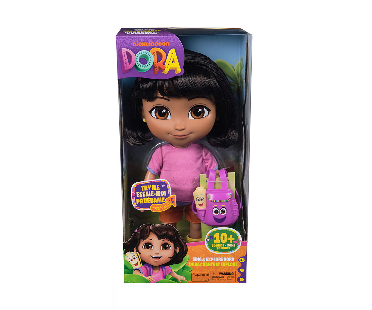 Приключенията те очакват с куклата Sing & Explore Dora! Тази 30-см кукла оживява с подвижни крайници и звукови ефекти за по-реалистична игра. Комплектът включва аксесоари като фиба за коса, гривна и любимата раничка на Дора.