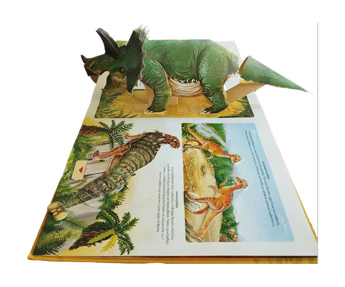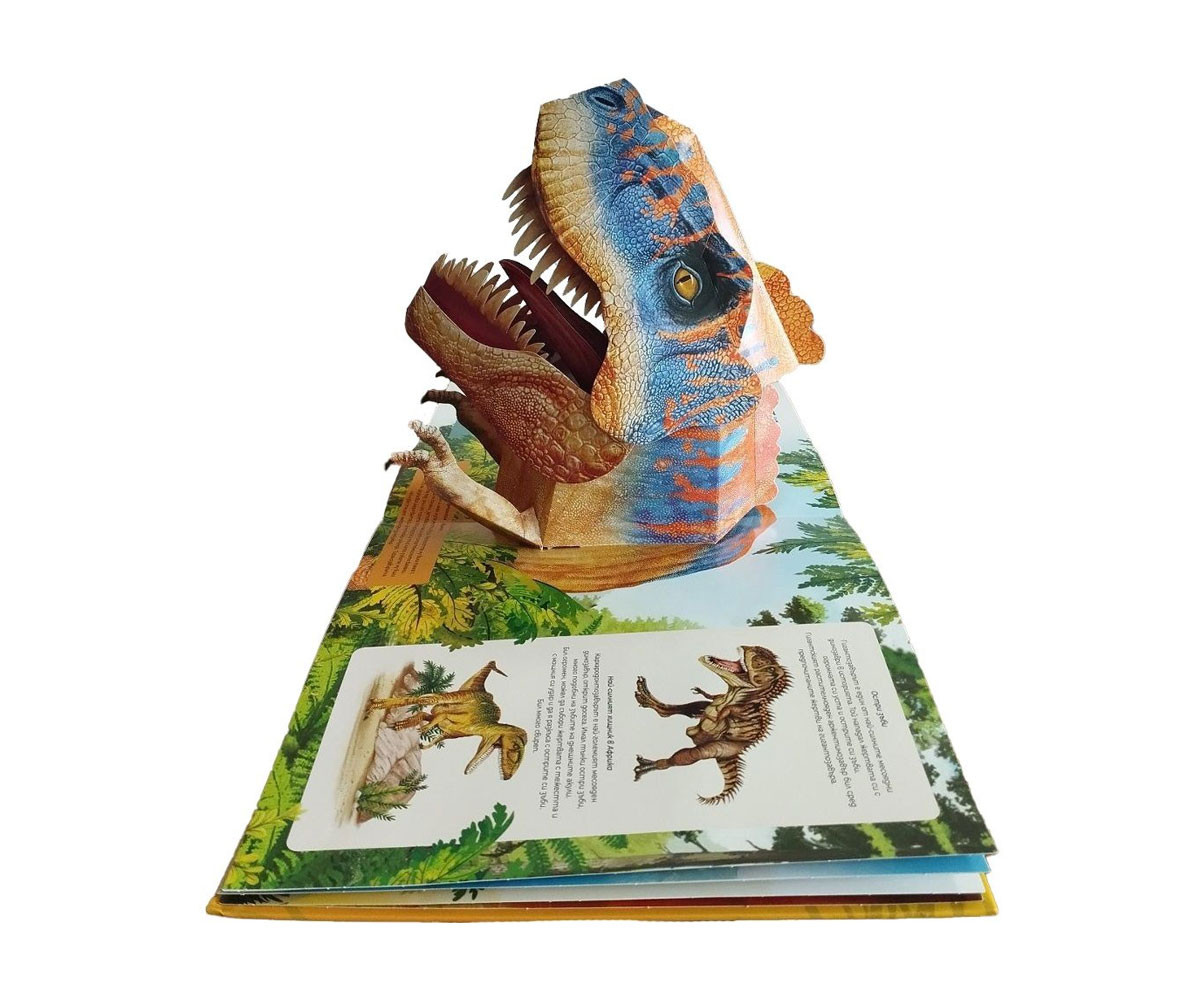 Триизмерни динозаври оживяват пред малкия читател, за да завладеят неговото въображение с полезна информация от епохата на динозаврите. Къде са живели, какви са били, как са изчезнали – на този и много други любопитни въпроси децата ще получат отговор в тази образователна 3D книга. Невероятно пътешествие назад във времето към ерата на динозаврите! Повече от 50 динозавъра в една книга! Изключителни 3D макети и десетки картонени елементи, които се движат, на всеки разтвор!