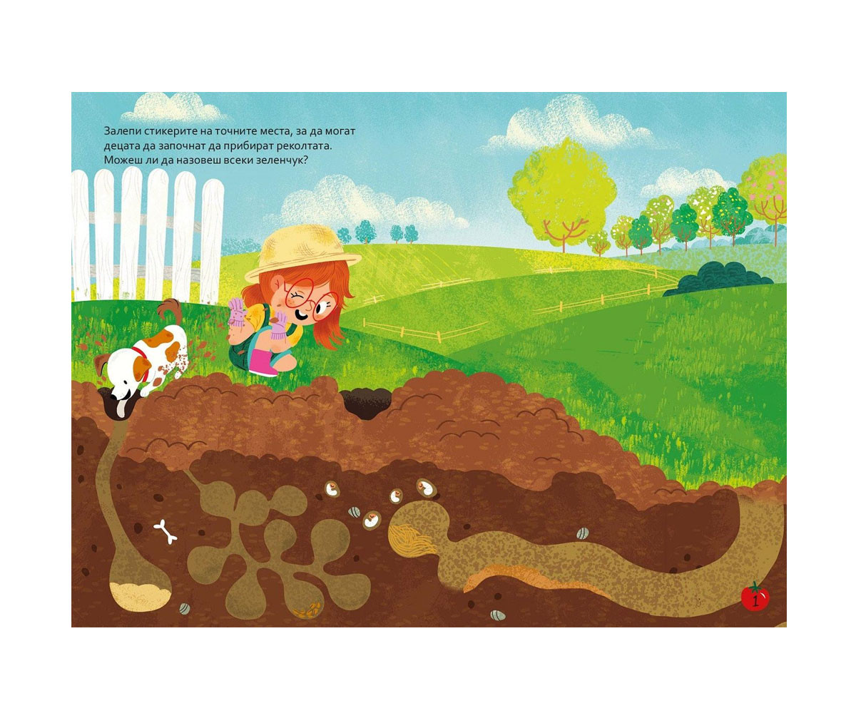 С над 180 стикера за многократно лепене в книжката „Плодове и зеленчуци“ малчуганите ще сътворят свои собствени приказни градини! Готови ли сте да изследвате чудесата на плодородната природа и радостта от отглеждането на плодове и зеленчуци? „Плодове и зеленчуци“ съдържа завладяващи илюстрации и многобройни стикери за многократна употреба, които позволяват на децата да създадат свои собствени сцени! Подходяща за любители на природата на всяка възраст, тази книга осигурява пълноценни мигове със семейството, самостоятелни креативни занимания и възможност за споделяне с приятели. Лесно и чисто! Интерактивните елементи тук не изискват усилия или допълнителни материали и превръщат работата с книгата в полезно и забавно творческо изживяване.