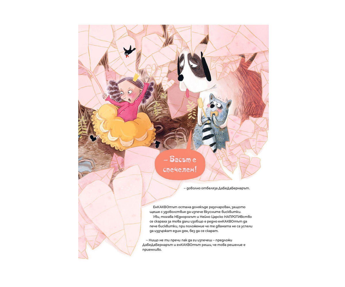 Малкият НЕднорог бутна Нейно царско НАПРОТИВство и тя падна. Безумие, ще си кажете, нали? Но нека не забравяме, че разглезената принцеса често се държи доста неуважително. За съжаление, бутането се случи точно на рождения й ден. И стана страшно! Нейно царско НАПРОТИВство не само заяви, че НЕднорогът е официално непоканен, но дори няма да опита от тортата!!! НЕднорогът осъзна, че ще пропусне якото парти, където щеше да има надуваем замък, клоуни и жабешки духов орКВАКстър. И торта... от която му беше забранено да опитва. Как да поправи белята ли? ДаБеДаБернарът и енКАКВОтът му предложиха в знак на извинение да избере специален подарък. Но как да подари каквото и да е на момиче, което си има всичко? И какво е това чуждо на НЕднороговата природа нещо, наречено “извинение”?