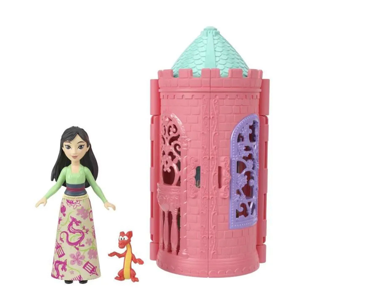 Създай своя вълшебен свят с Disney Storytime Stackers и комплектите Кула от замък с изненади и малка кукла! Отвори кулата и открий очарователна малка кукла Принцеса, вдъхновена от анимационните героини от филмите на Disney. Открий още четири изненади, включително пола, сладко приятелче и тематични аксесоари. Свържи своя свят, като прикрепиш кулите към други комплекти Storytime Stackers (продават се отделно), за да създадеш най-прекрасното подредено кралство! Всяка кукла се продава отделно, в зависимост от наличността. Куклите не могат да стоят самостоятелно. Цветовете и декорациите може да варират.