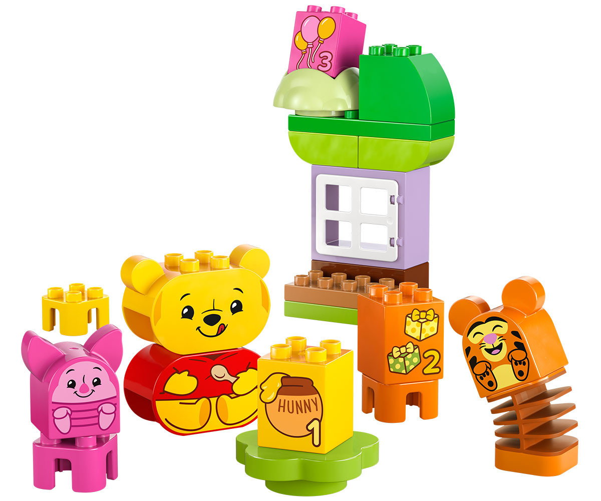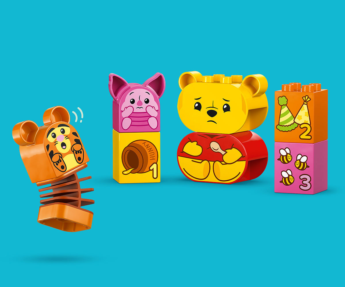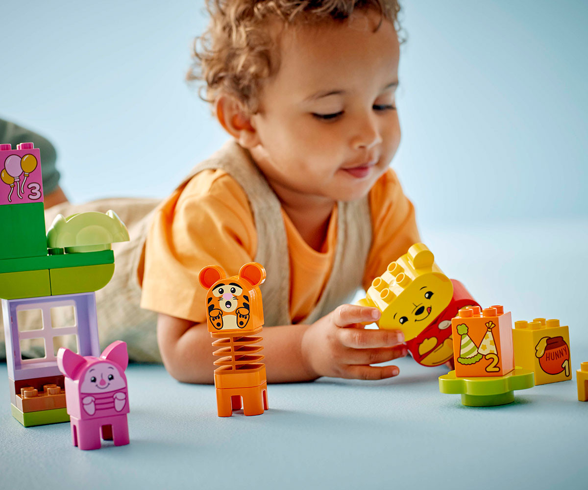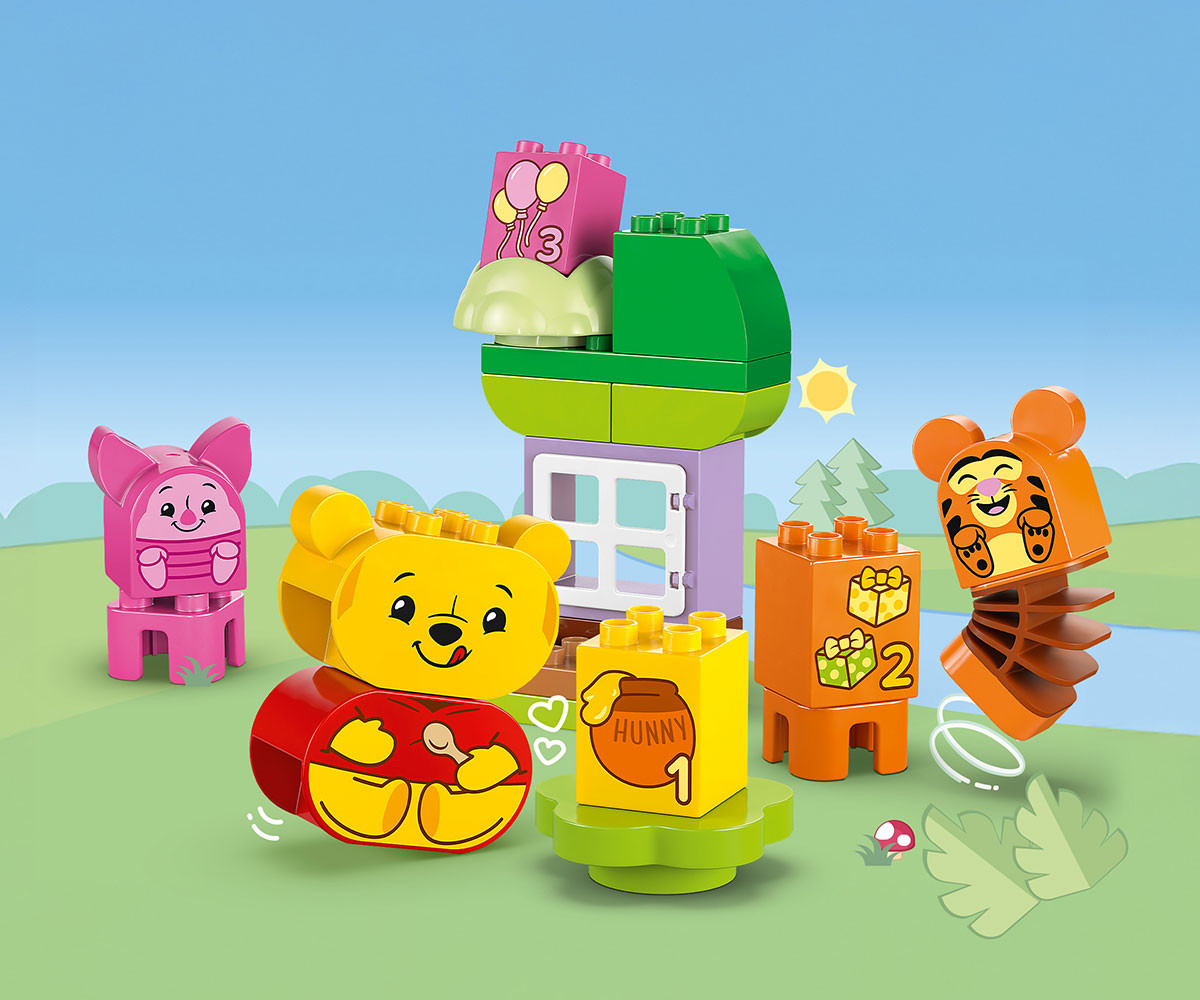 - Забавна образователна играчка за построяване – малките деца се наслаждават на игра на празник и упражняват предучилищни умения с комплекта LEGO® DUPLO® ǀ Disney Парти за рождения ден на Мечо Пух;