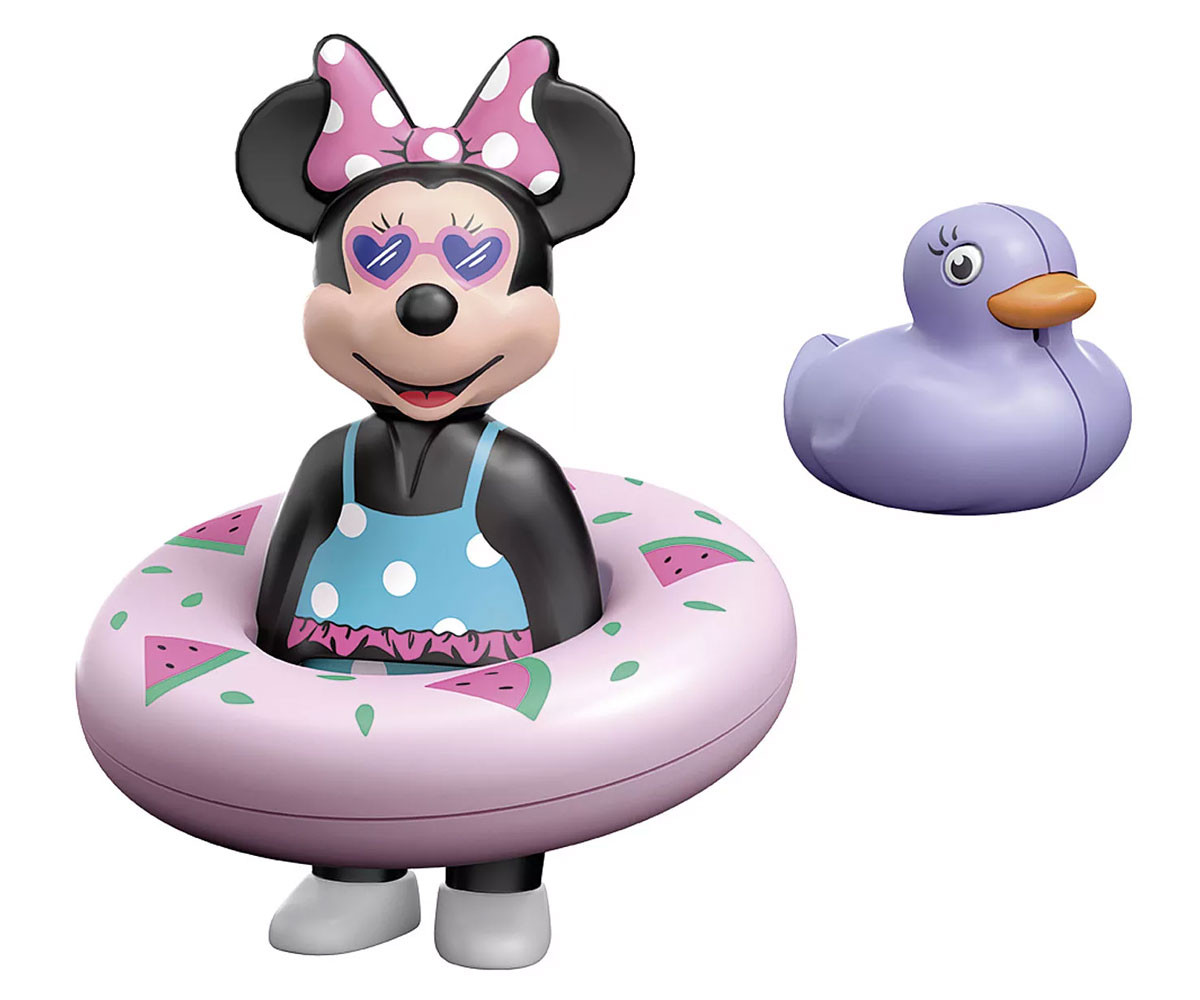 Гарантирано водно забавление! С летния комплект за игра в банята, вдъхновен от Мини Маус на Дисни, вашето дете може да направи първите си открития във водата по забавен начин. Детето ви ще развива фината си моторика и евентуалният страх от водата ще изчезне за нула време. Нека вашето дете започне летните си приключения в банята с Мини Маус. Мини бързо скача в сладкия си пояс и забавлението започва. Любопитното пате доплува към нея. То също иска да играе. Кой може да плува по-добре, Мини Маус или патето?