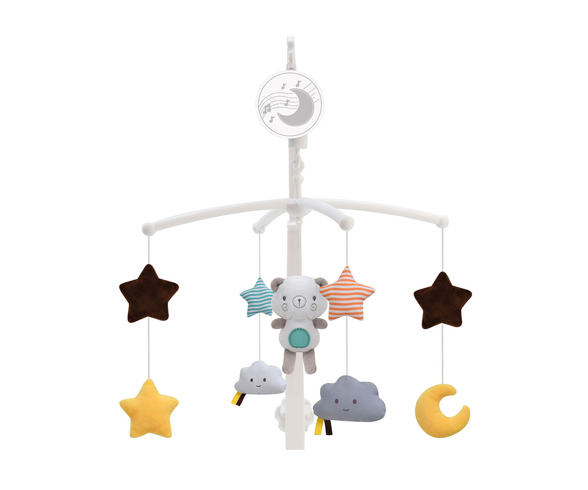 Музикалната въртележка е с навивен механизъм, приспивни мелодии, меки играчки, може да се постави на стандартна кошара, може да се монтира към някои модели колички.