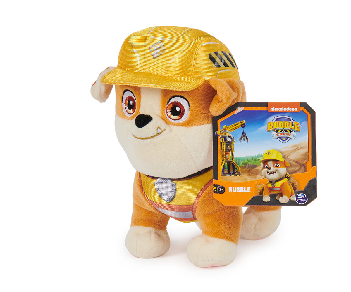 Пригответе се за строителство с плюшените играчки Rubble & Crew! Представени от създателите на PAW Patrol и изработени от висококачествени платнени материали, тези супер меки плюшени играчки са задължителни за феновете на поредицата и чудесен подарък за деца от всички възрасти! Всяко кученце от Rubble & Crew е облечено в автентичната си строителна униформа от шоуто и е високо над 18 см, което ги прави перфектни приятели за игра за децата, които обичат да преживяват любимите си моменти от сериала! За още повече забавления с въображаема игра, потърсете всички плюшени кученца, като Rubble, Wheeler, Mix, Charger и Motor!