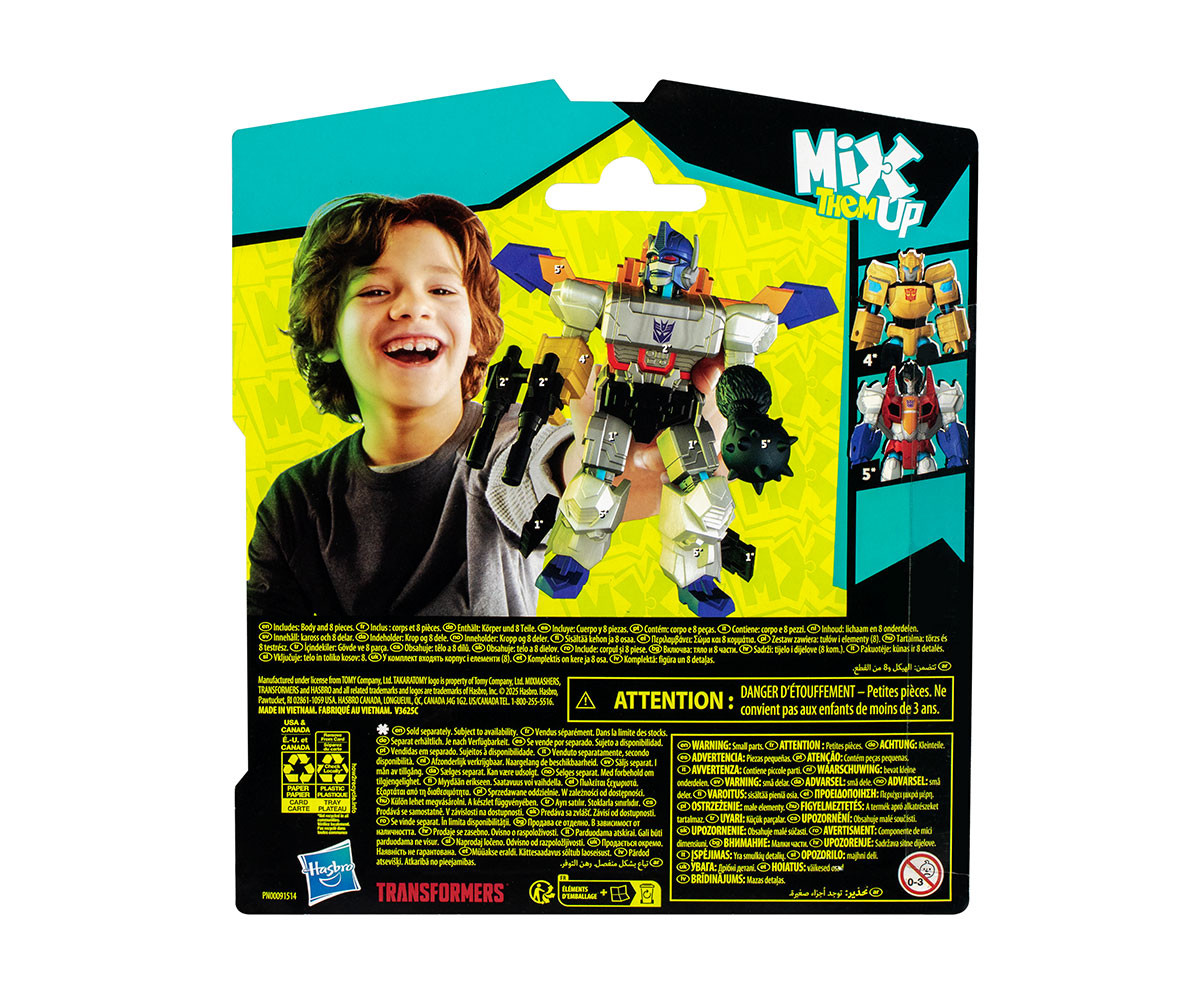 Дори най-могъщите герои понякога имат нужда от помощ… ръка, крак, юмрук или аксесоар! Фигурите са събиране MixMashers Transformers включват части, които се разделят и комбинират, за да създадеш уникални персонализирани герои. С 16 свързващи точки, роботите MixMashers Transformers с височина 12 см разполагат с универсални конектори, които осигуряват съвместимост и издръжливост в цялата серия. Искаш още повече смесени суперсили? Събери включените аксесоари и части за усилване на силите, за да построиш фигури с максимална мощ! Потърси още играчки MixMashers, които децата могат да колекционират или да подарят за рожден ден и празници!