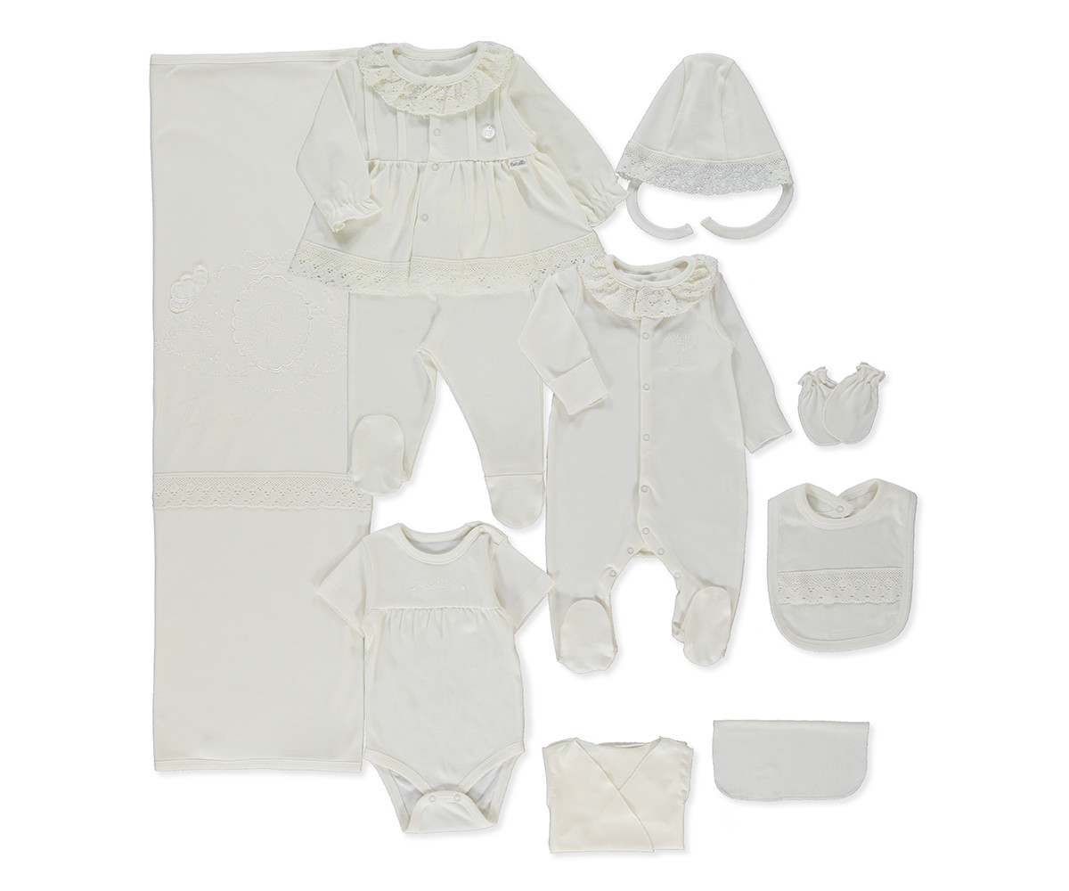 - Name: Bebetto Z1128 - Interlock Layette Set Of 10 (Ceremony), 0-3M/62CM, dark ecru