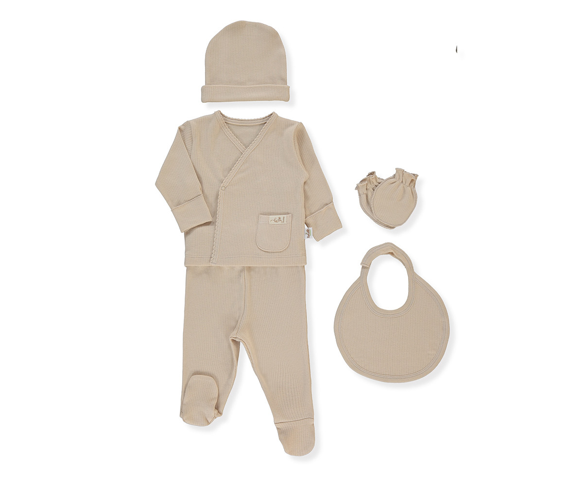 - Name: Bebetto Z1087 - Organic Interlock Layette Set Of 5 (Organic Be Nature), 0-3M/62CM, beige