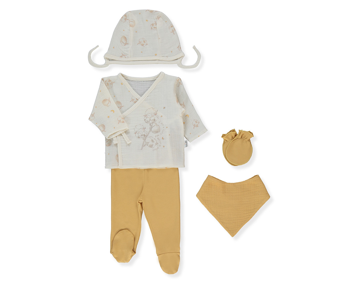 - Name: Bebetto Z1090 - Muslin Layette Set Of 5 (Pillowy), 0-3M/62CM, mustard