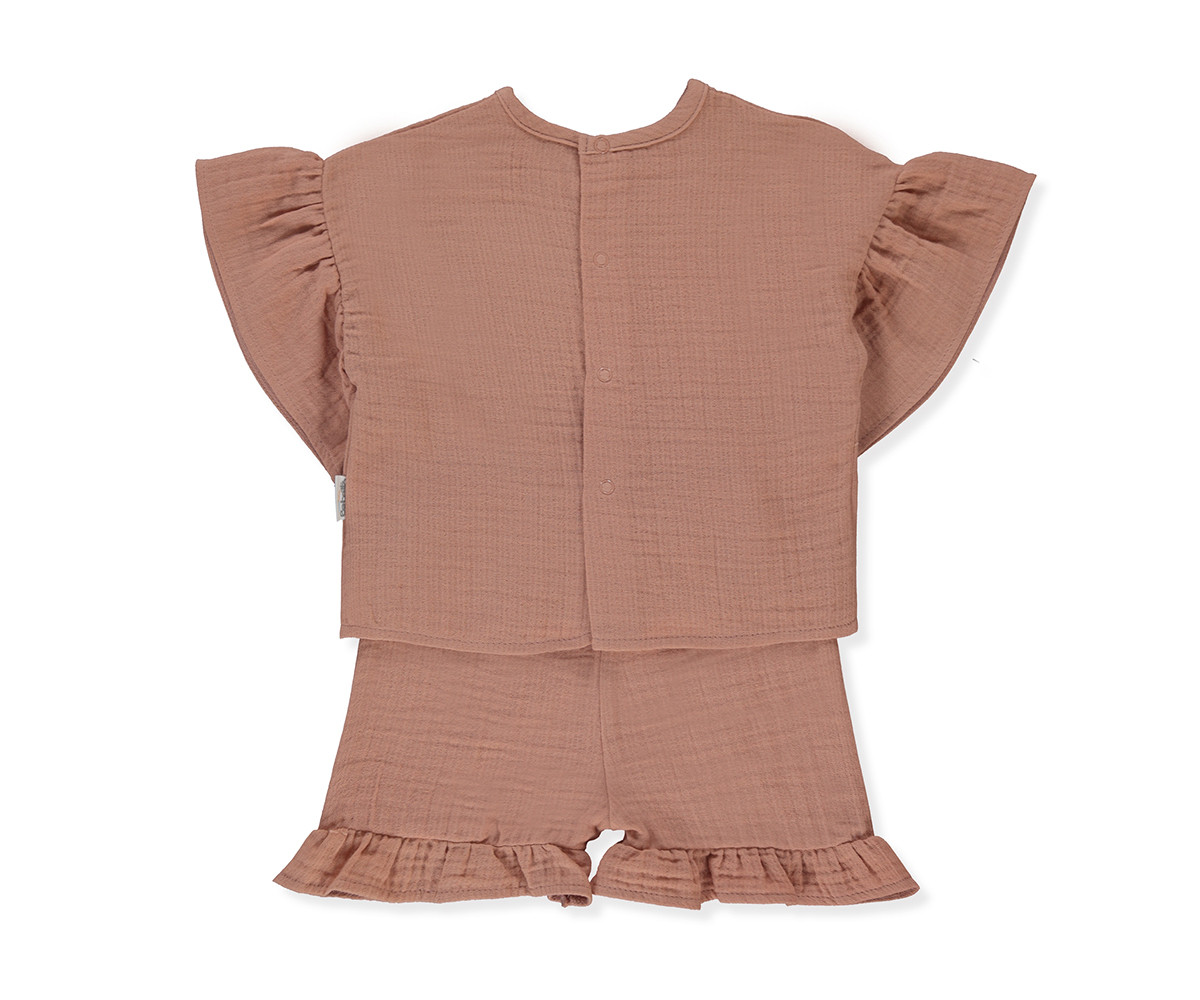 Bebetto - Комплект муселинови блуза с къс ръкав и шорти Pillowy K5192BR, момиче, 3-24 м.