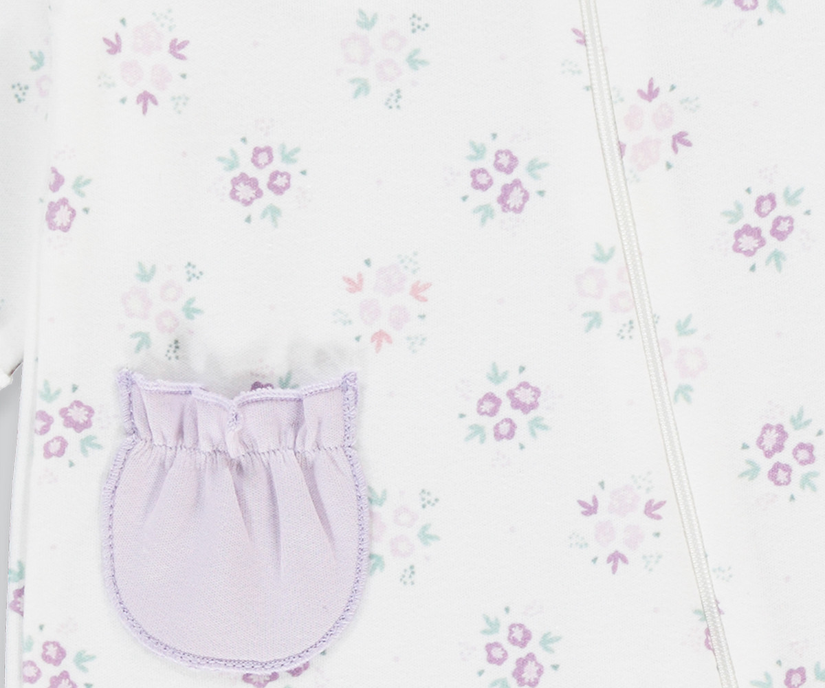 - Name: Bebetto T3791 - Interlock Zippered Footies (Flowers/25), 6-9M/74CM, lilac