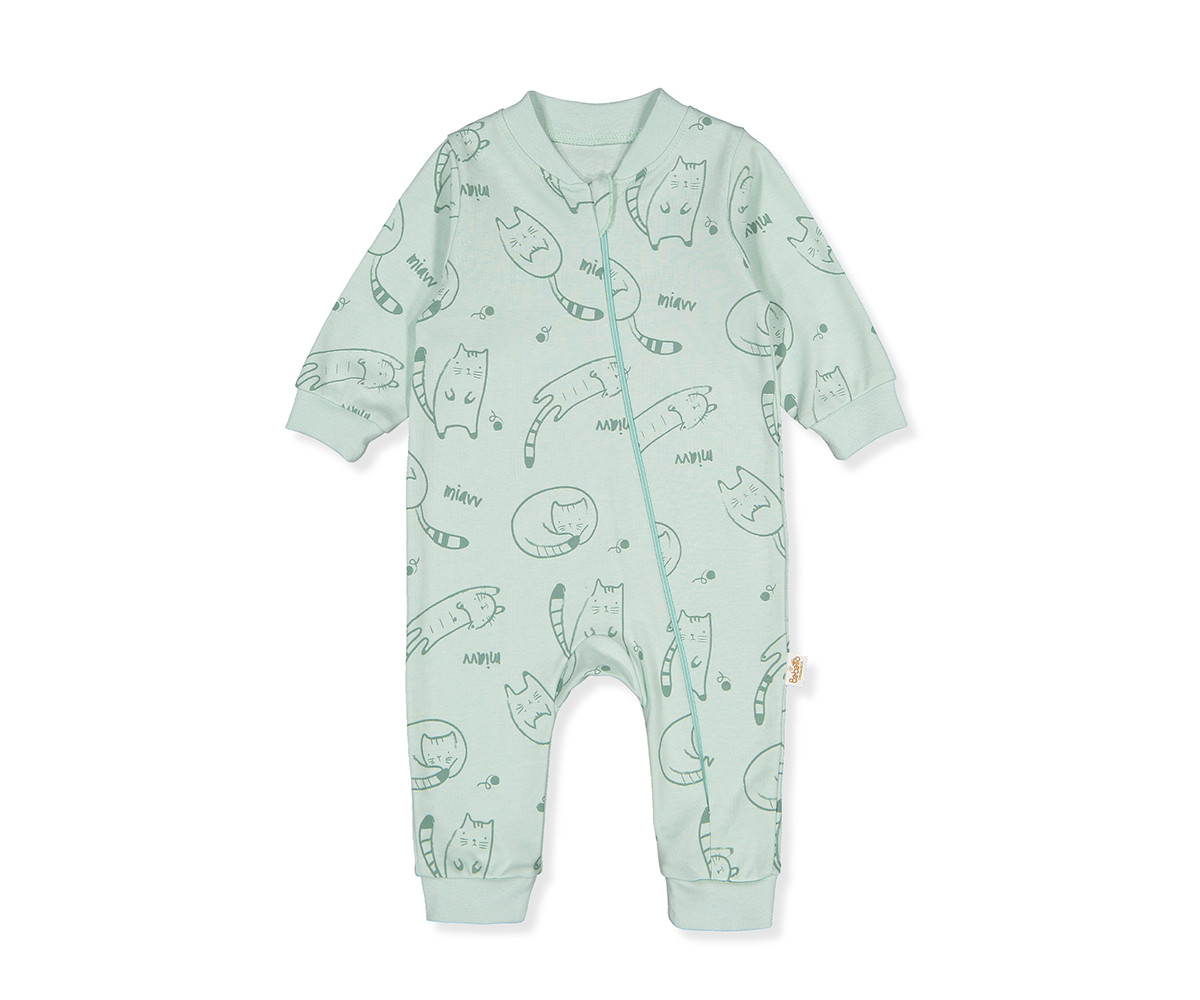 - Name: Bebetto T3836 - Organic Interlock Zippered Jumpsuit (Organic Sleepy Cat), 12-18M/86CM, green