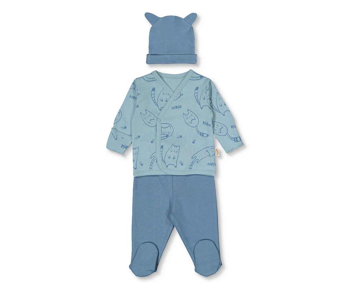 Bebetto - Комплект камизолка, ританки и шапка Organic Sleepy Cat Z993I, момче, 0-3 м.
