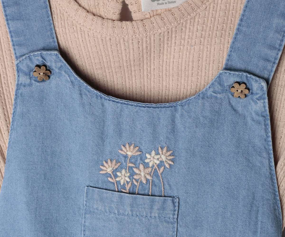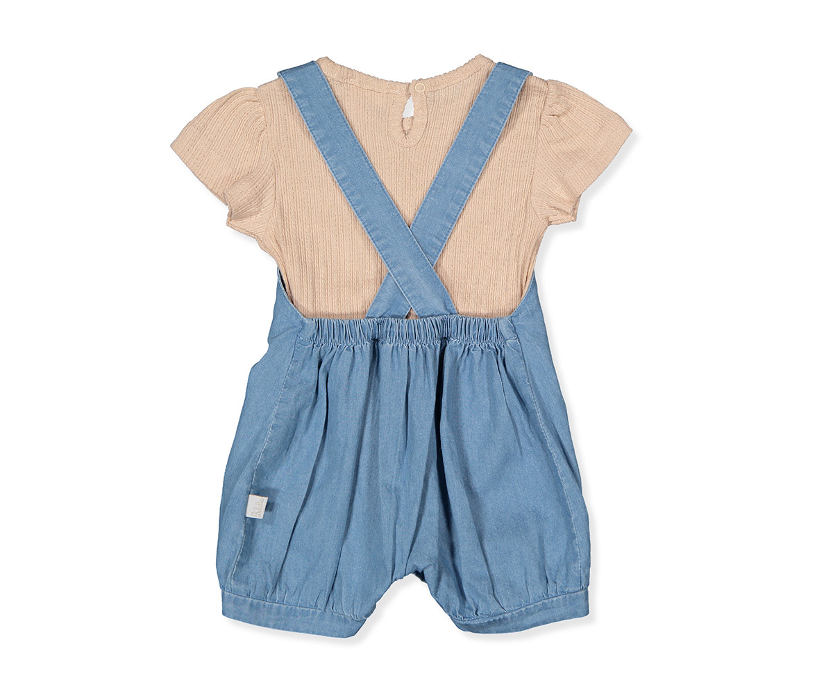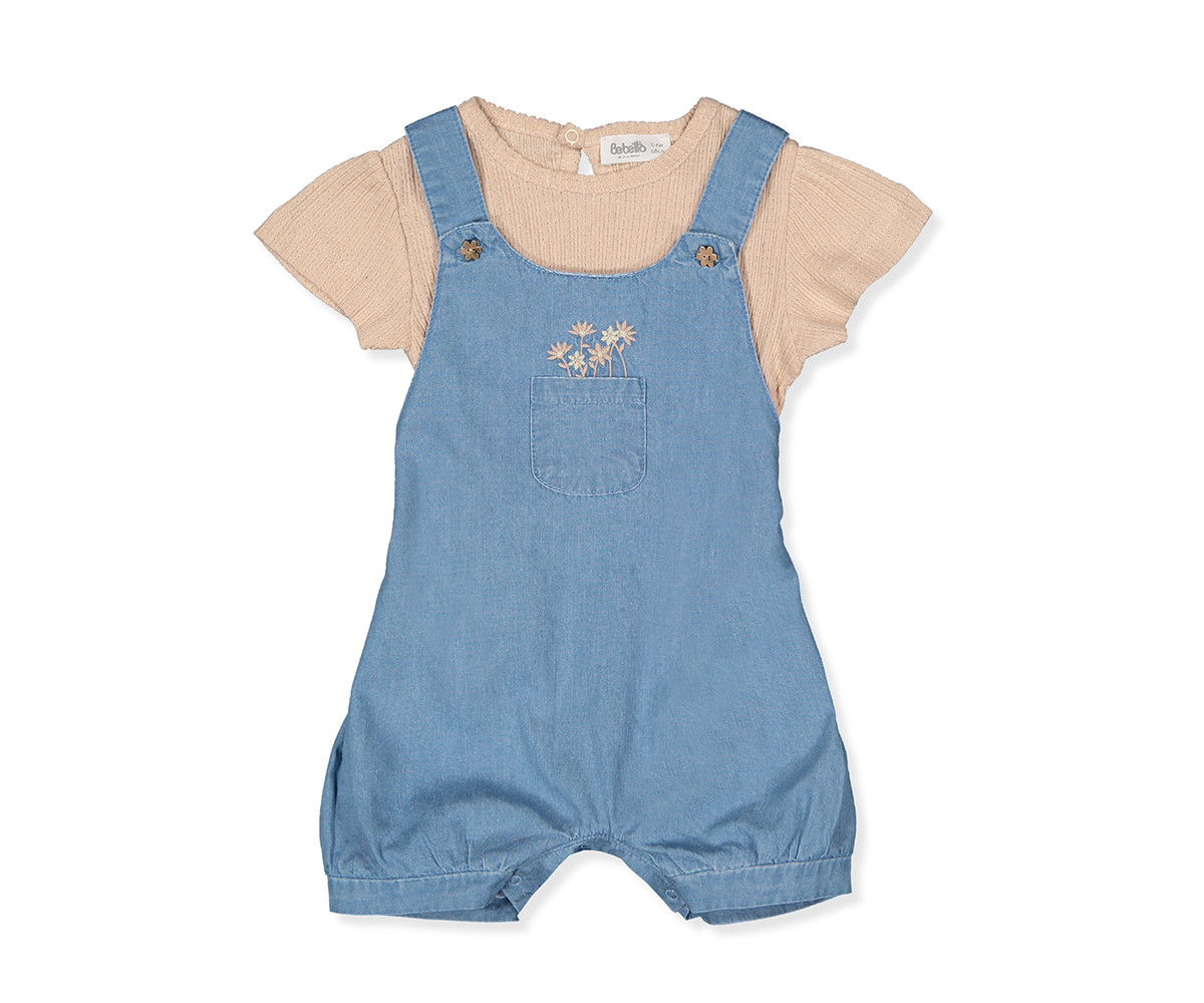 - Име: Bebetto - Комплект тениска с къс ръкав и къс гащеризон деним Tiny Flowers K4688, момиче, 6-24 м.