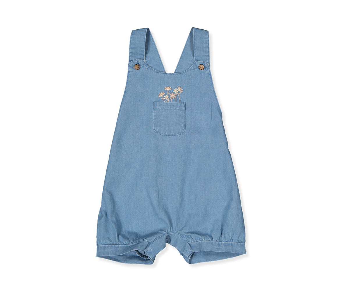 Bebetto - Комплект тениска с къс ръкав и къс гащеризон деним Tiny Flowers K4688, момиче, 6-24 м.