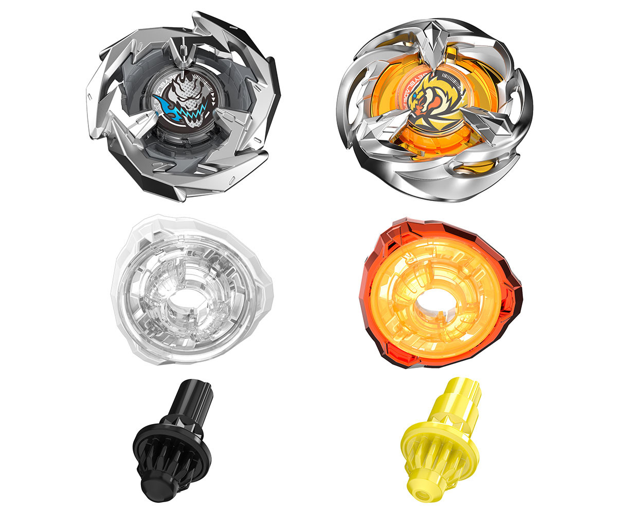 - Включва 2 плота с дясно въртене, проектирани от Takara Tomy, с автентични ляти под налягане метални части;
