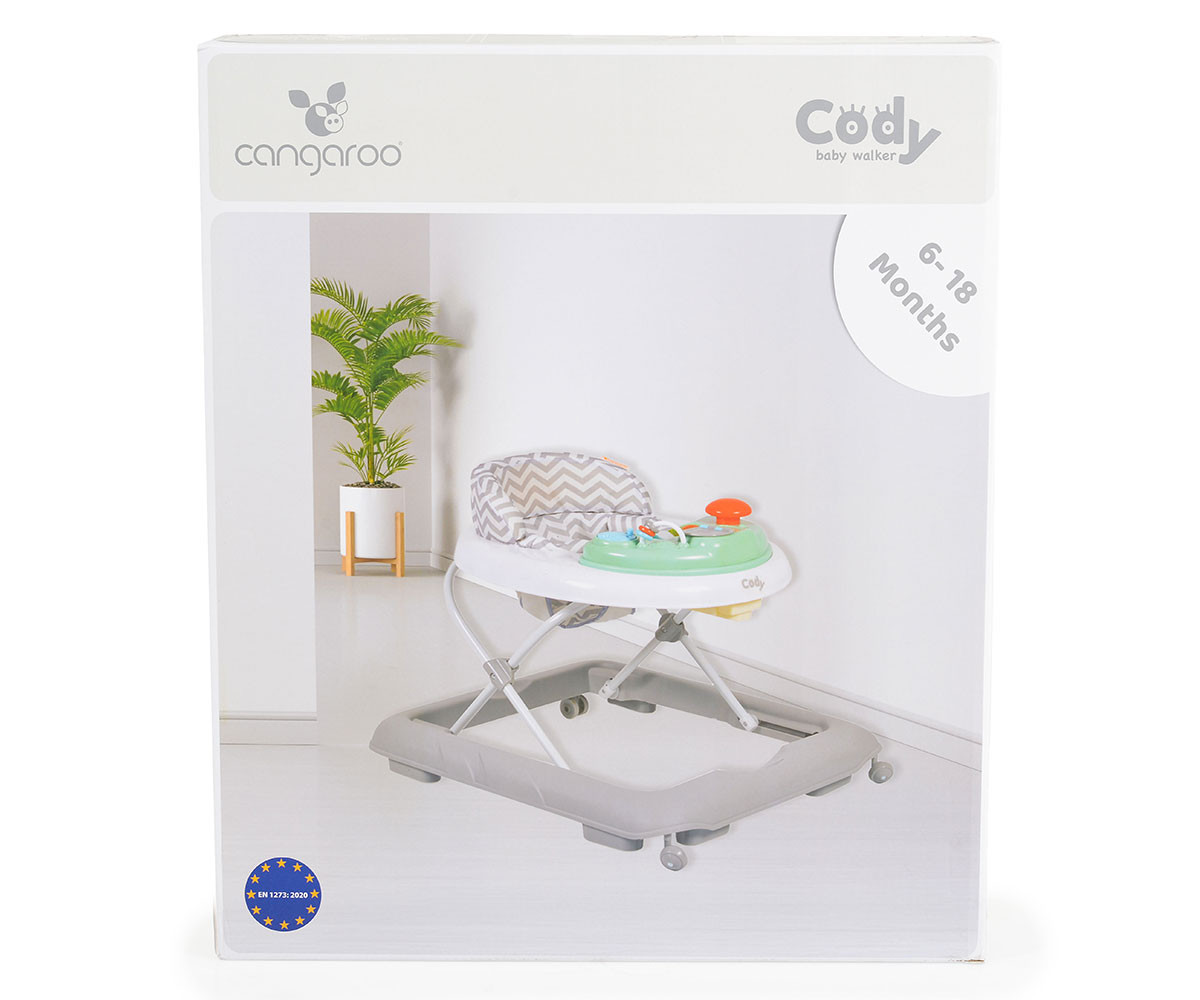 Създадена с много любов и внимание към най-малките, детската проходилка Cody впечатлява със своя цветен дизайн и функционалност. Неизменен помощник на Вашето бебе в един от най-важните му периоди – времето, когато ще направи своите първи стъпки.