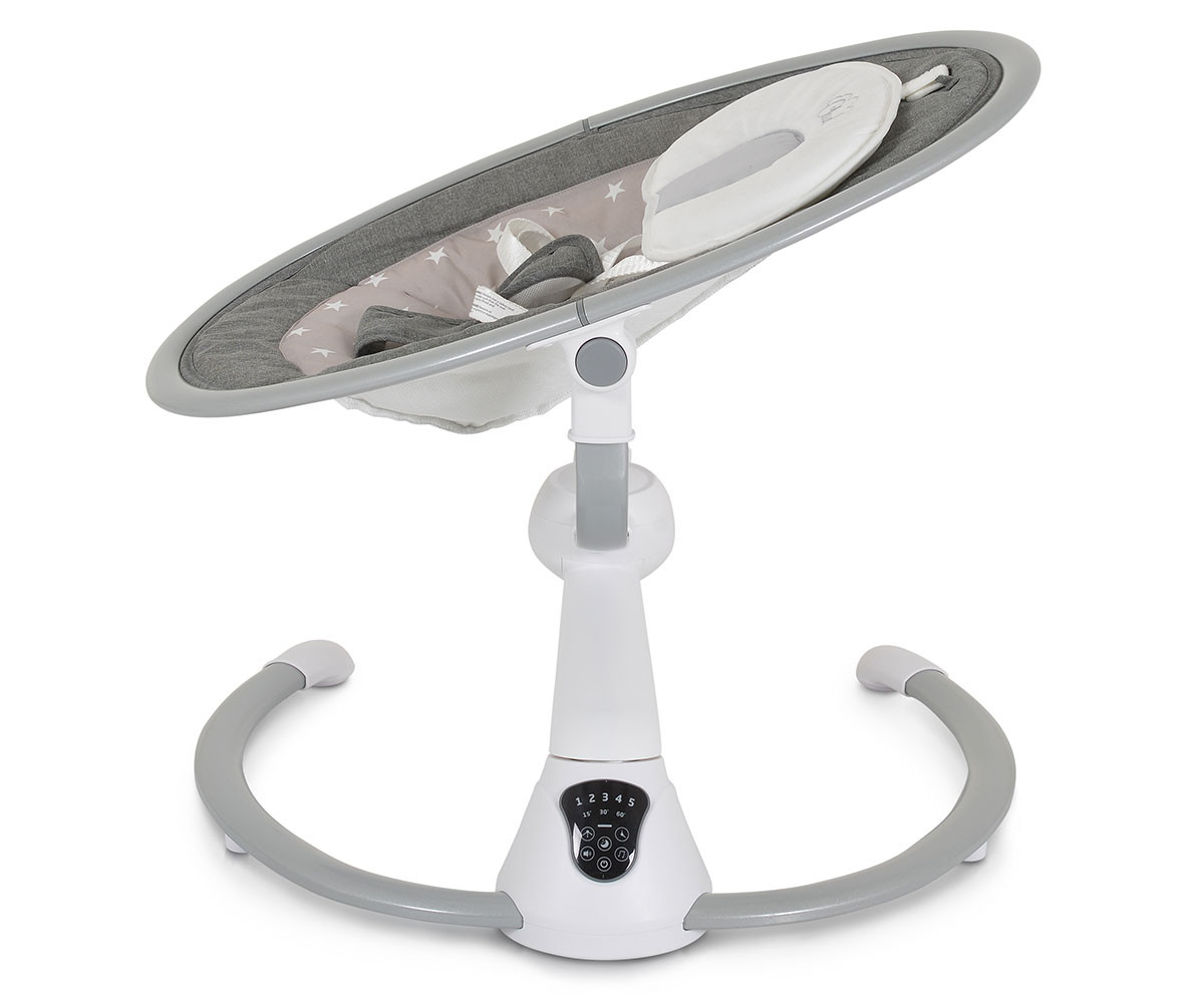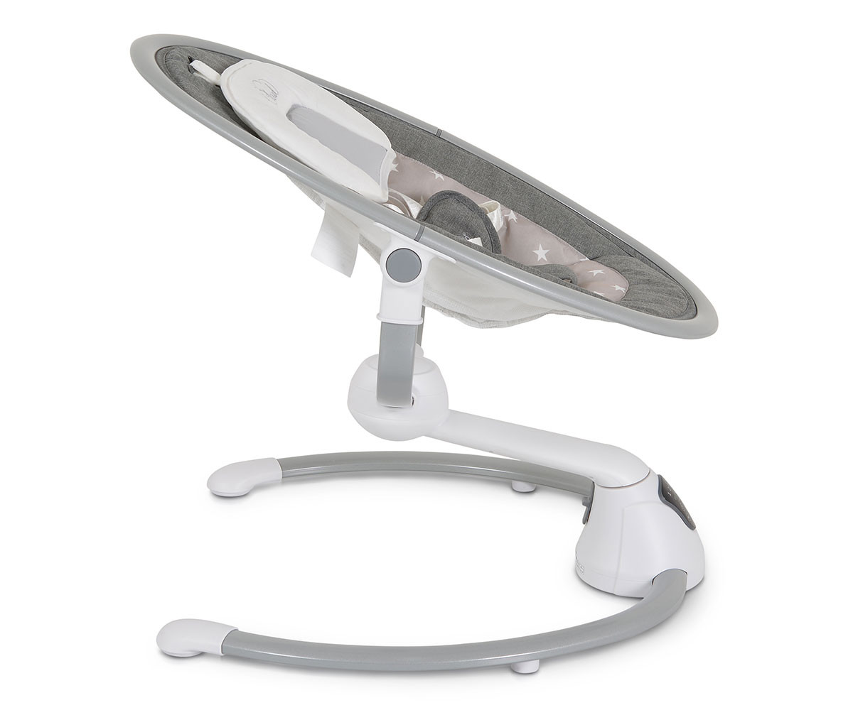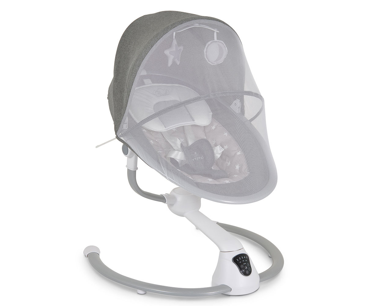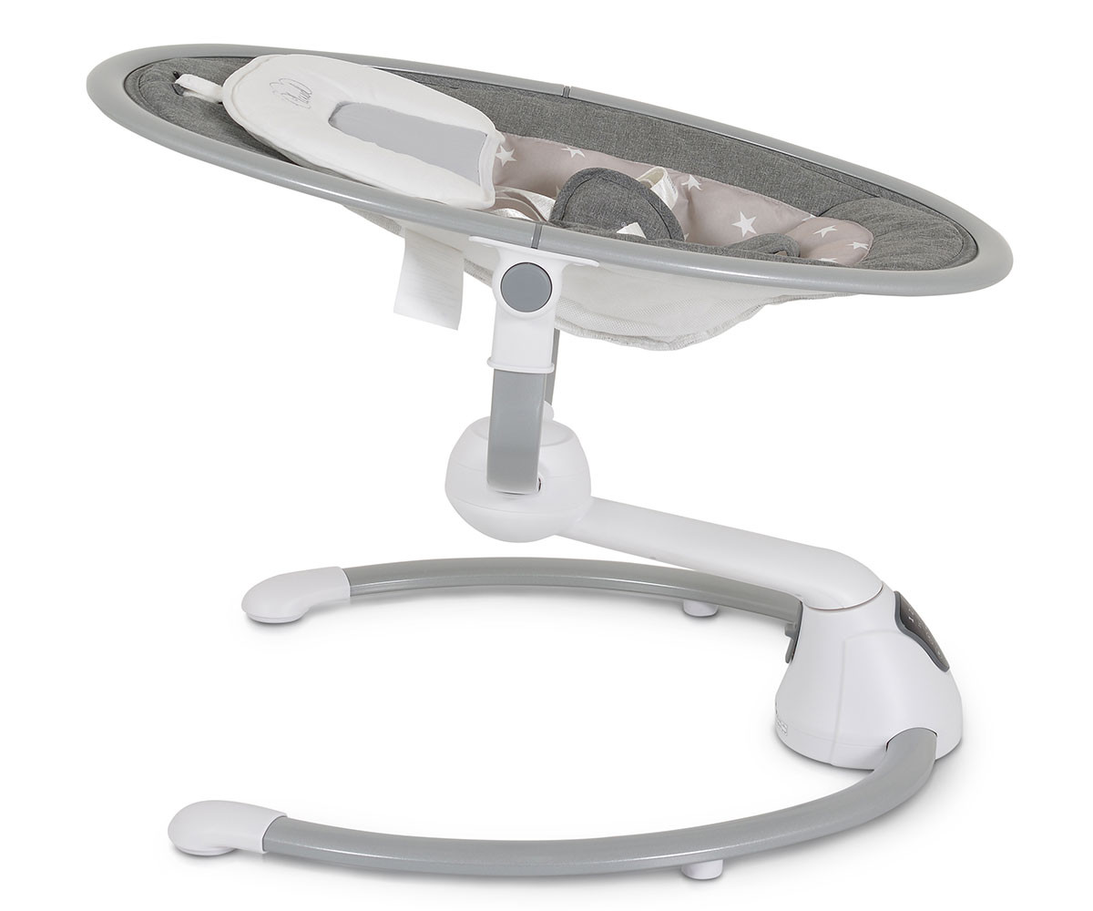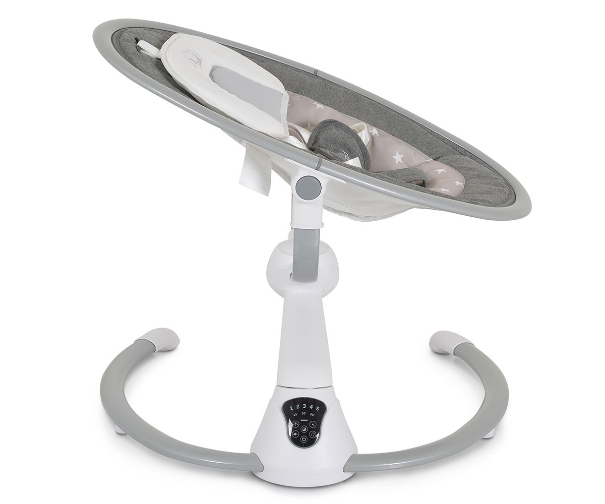 Електрическата люлка Cloud е удобно решение за всеки родител. Тя има 360-градусова ротация на седалката и 2 позиции на наклона. Предоставя избор между 5 скорости на люлеене и 3 времена за автоматично изключване. Можете да се възползвате и от вградения детектор за движение, който активира люлката автоматично. Има 12 мелодии и 5 природни звука, като силата на звука може да се регулира. За развитие на зрителните възприятия и разпознаването на различни форми е включен гриф с 2 меки играчки. За по-голямо удобство са предоставени също допълнителна възглавничка и сенник с мрежа против комари. Люлката работи с включен в комплекта адаптер или на батерии, които не са включени. Може да се ползва с Bluetooth функция. При желание механизмът се застопорява и продуктът се превръща в шезлонг.