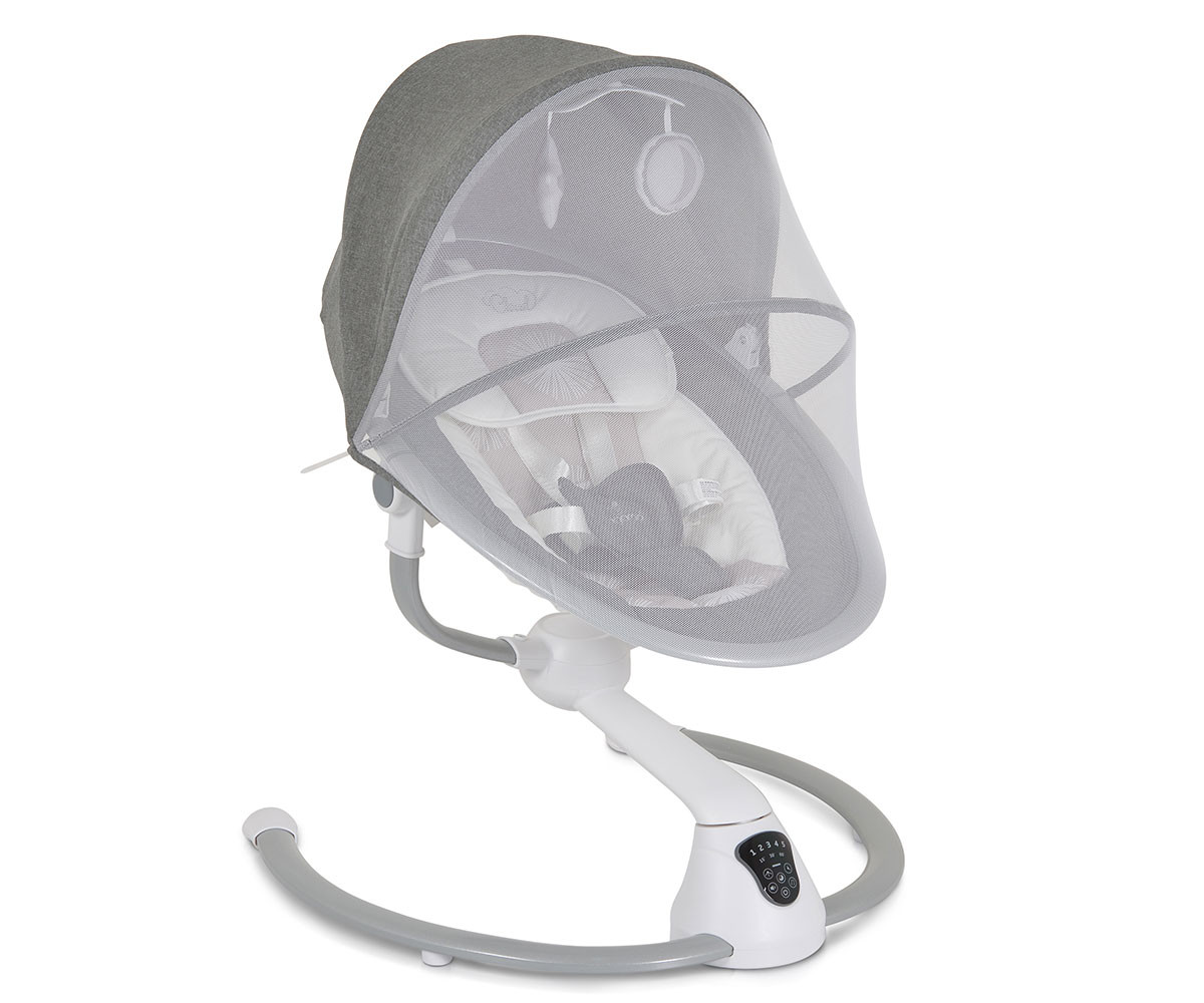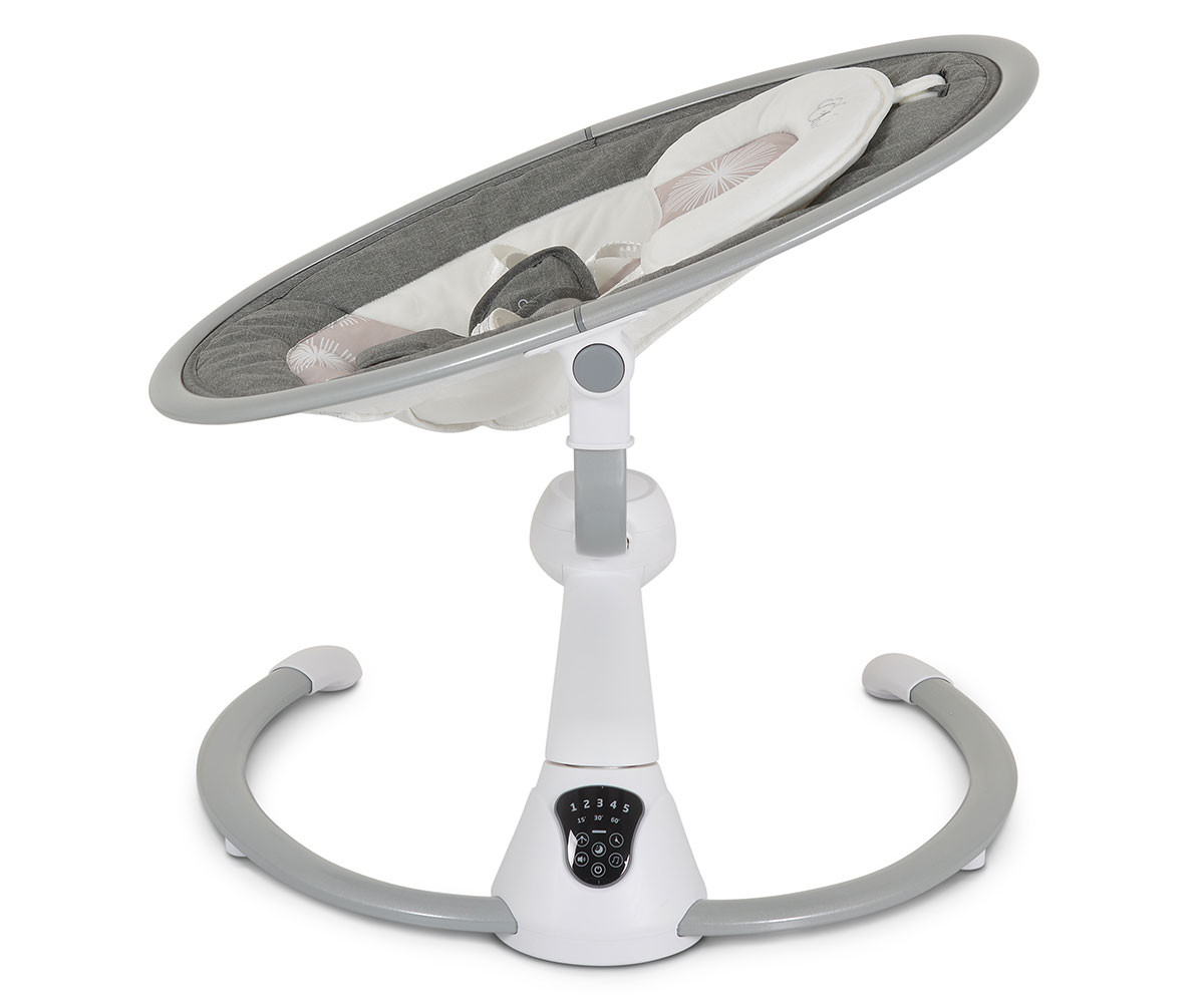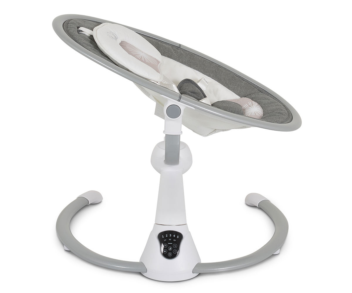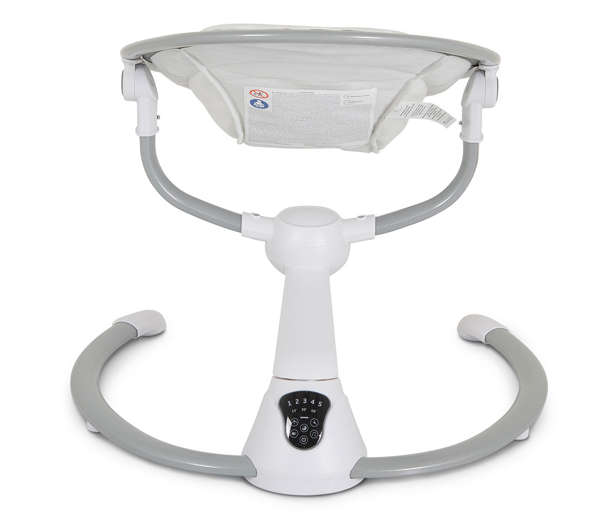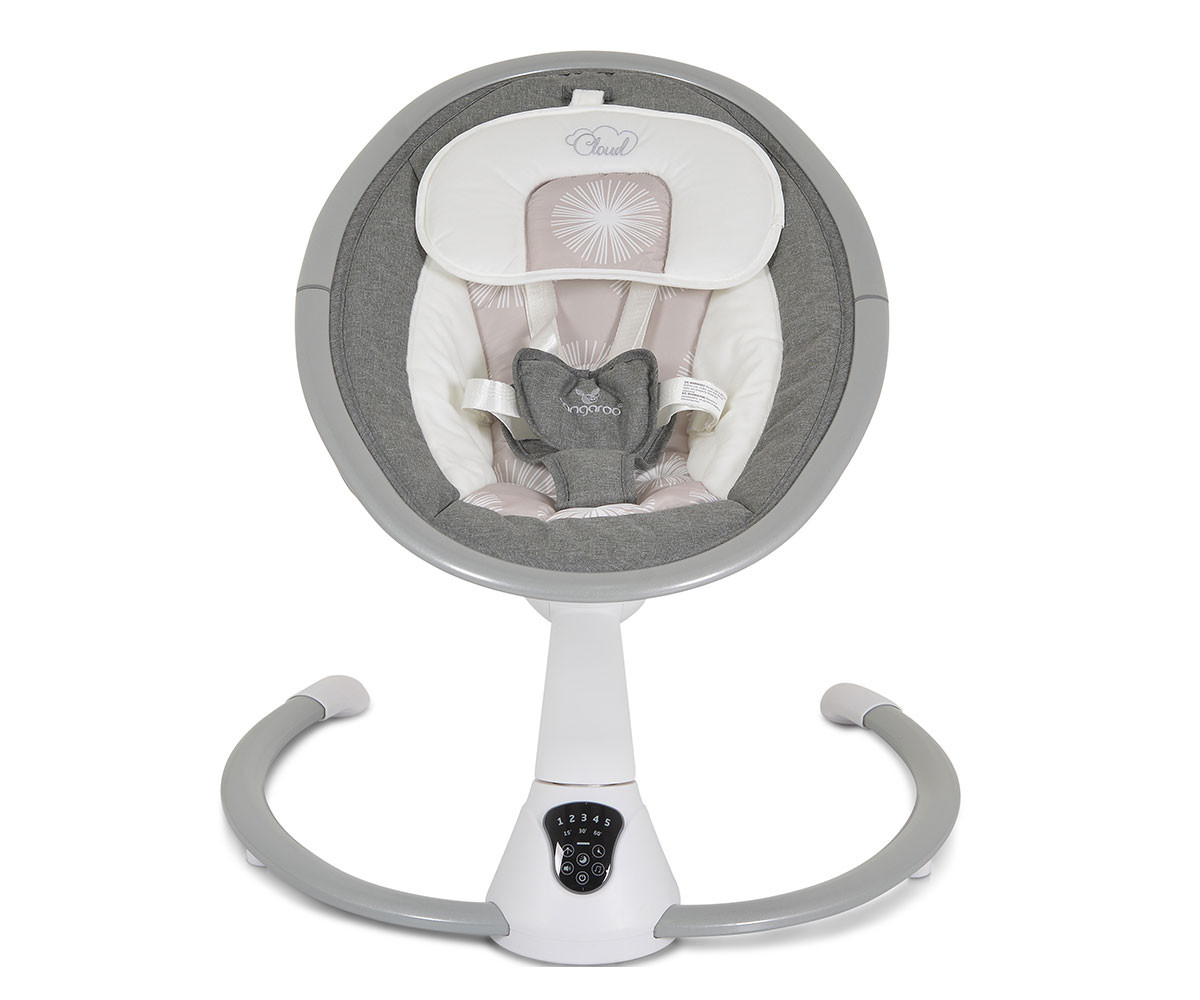 Електрическата люлка Cloud е удобно решение за всеки родител. Тя има 360-градусова ротация на седалката и 2 позиции на наклона. Предоставя избор между 5 скорости на люлеене и 3 времена за автоматично изключване. Можете да се възползвате и от вградения детектор за движение, който активира люлката автоматично. Има 12 мелодии и 5 природни звука, като силата на звука може да се регулира. За развитие на зрителните възприятия и разпознаването на различни форми е включен гриф с 2 меки играчки. За по-голямо удобство са предоставени също допълнителна възглавничка и сенник с мрежа против комари. Люлката работи с включен в комплекта адаптер или на батерии, които не са включени. Може да се ползва с Bluetooth функция. При желание механизмът се застопорява и продуктът се превръща в шезлонг.