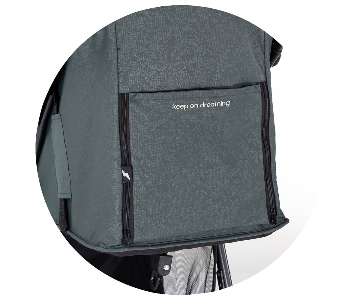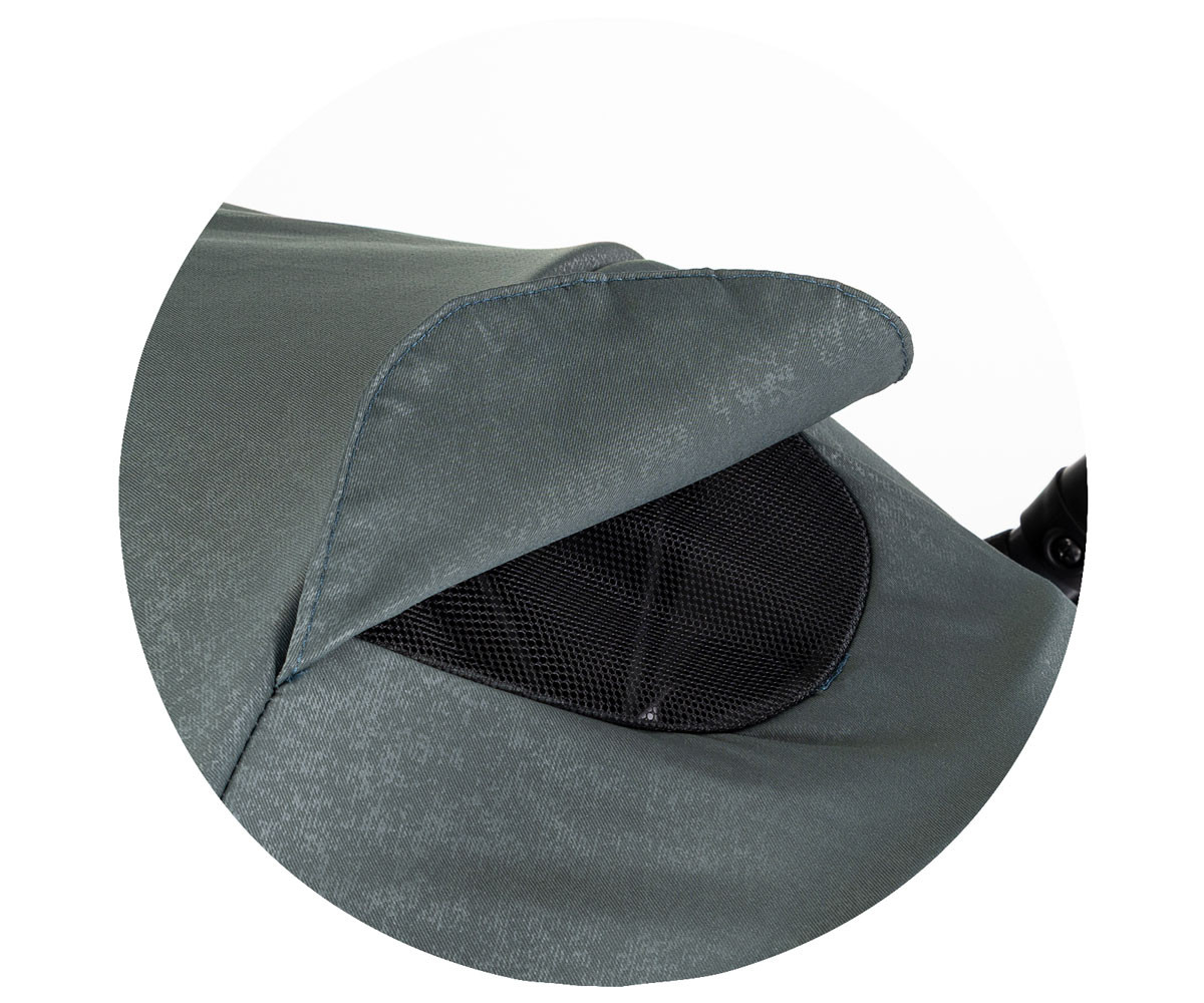 - Голям регулируем сенник с прозорец за наблюдение на детето и козирка;