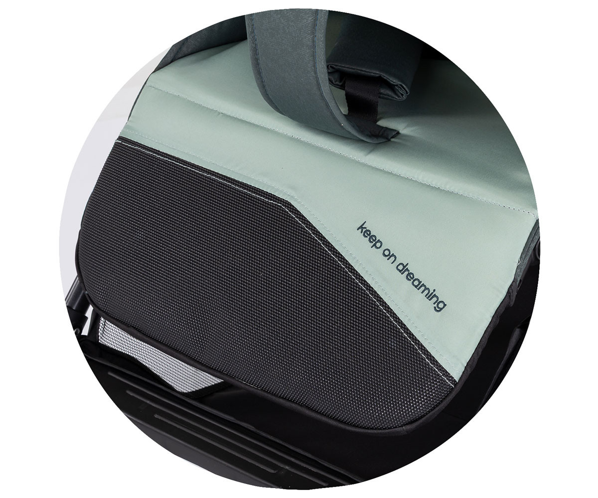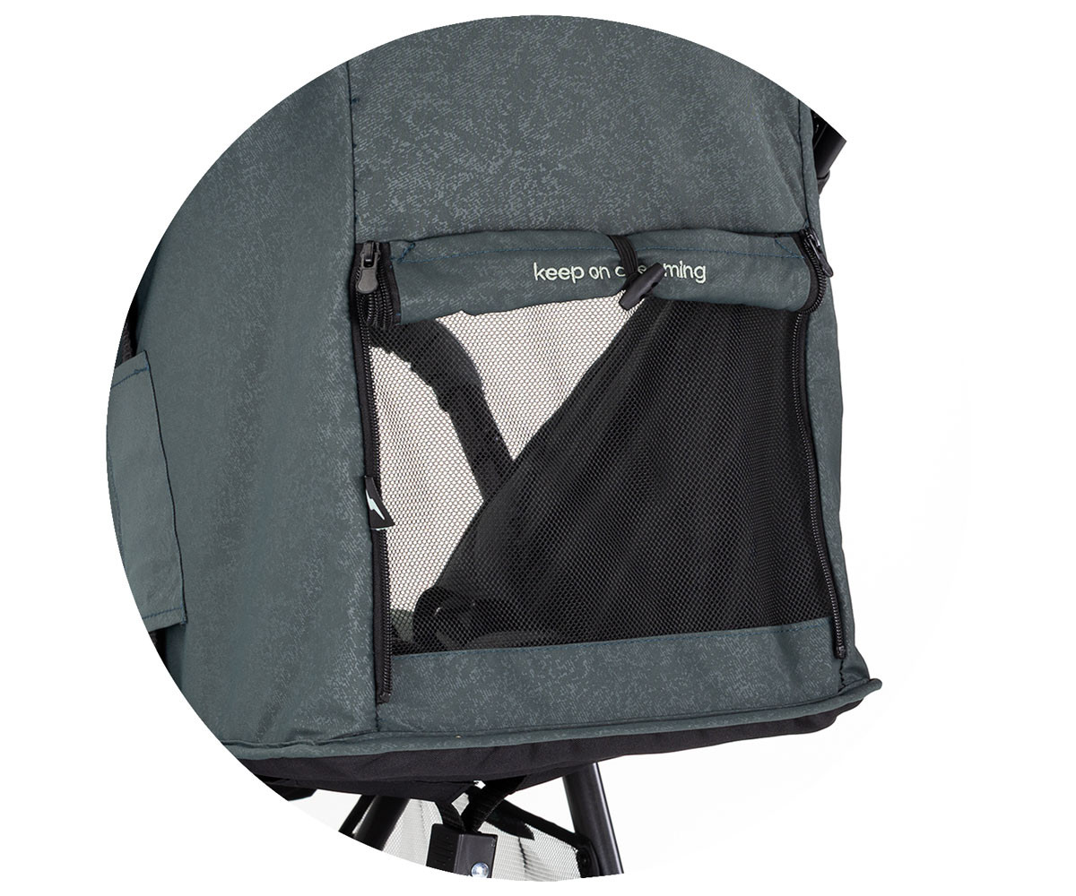 - Мрежа за проветрение и джоб за аксесоари на долната част на сенника;