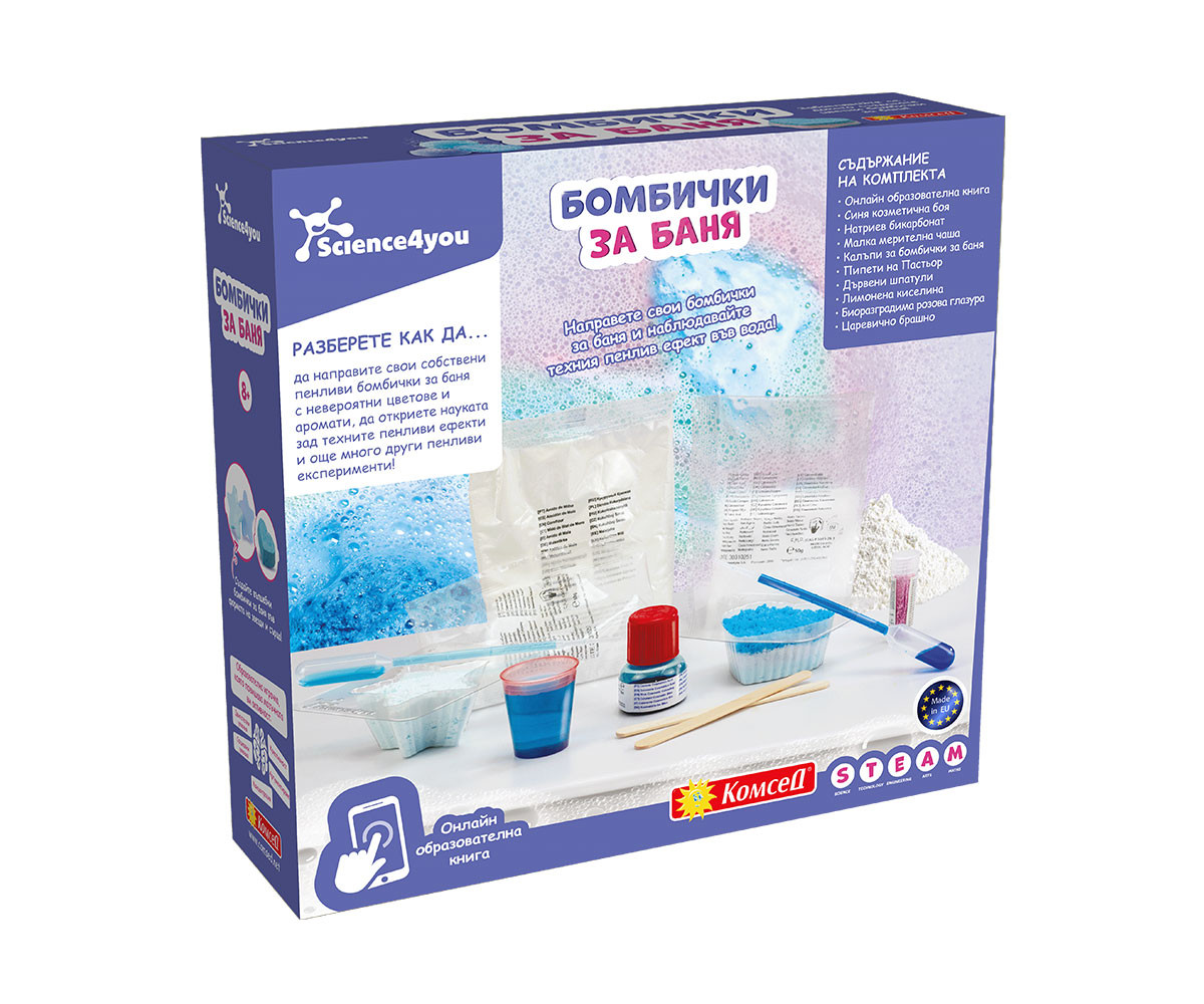 Забавлявайте се, докато създавате цветни бомбички за баня! Направете свои бомбички за баня и наблюдавайте техния пенлив ефект във вода!